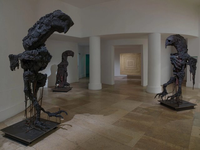 Pour le prix Marcel-Duchamp, l'artiste français a imaginé de grandes sculptures d’oiseaux qui dialoguent avec des silhouettes de perroquets en bronze et soixante-dix portraits stylisés pour interroger notre rapport au vivant et à l’éphémère.