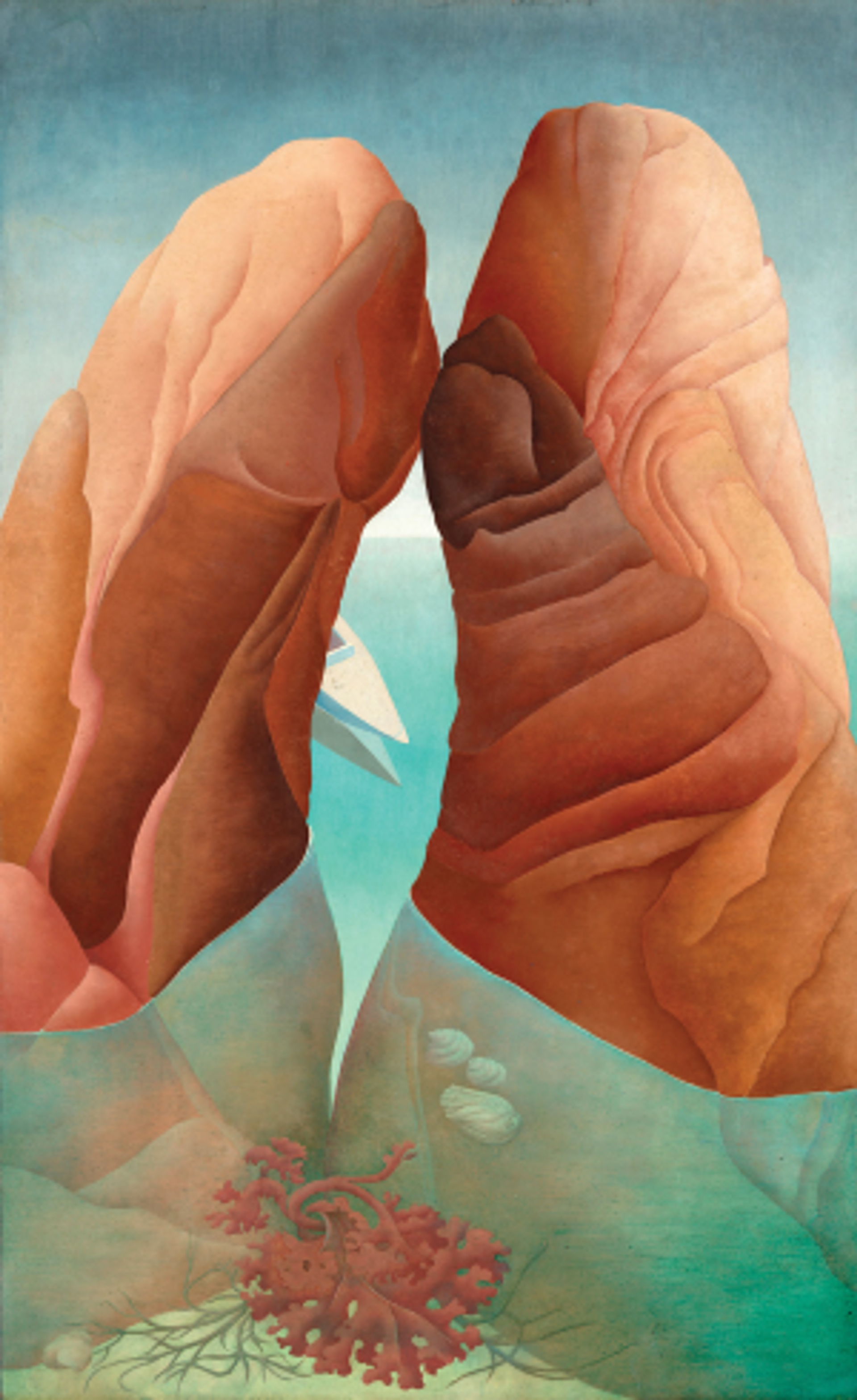 Ainsi, chaque salle déploie plusieurs niveaux de lecture qui s’incarnent dans un accrochage souvent stimulant. Aux côtés d’œuvres aussi fameuses et fréquemment exposées ou reproduites que Le Portrait [prémonitoire] de Guillaume Apollinaire (1914) de Giorgio De Chirico, L’Ange du foyer (1937) de Max Ernst, Visage du Grand Masturbateur (1929) de Salvador Dalí et L’Empire des lumières (1954) de René Magritte, le spectateur a la joie de découvrir des pièces moins connues, exerçant une attraction bien réelle (dont un grand nombre sont signées de femmes trop longtemps reléguées aux oubliettes) : les yeux hypnotiques d’Edith Rimmington (Museum, 1951), la monstrueuse Chambre 202, Hôtel du Pavot (1970) de Dorothea Tanning, sans oublier un bien nommé Objet méchant (1965-1969) de Joyce Mansour, pour n’en citer que quelques-unes. Au cœur de cet accrochage, des peintres, dont l’œuvre mériterait une exposition à elle seule, ne sont à manquer sous aucun prétexte : les Britanniques Leonora Carrington et Ithell Colquhoun, toutes deux auteures prolifiques par ailleurs.