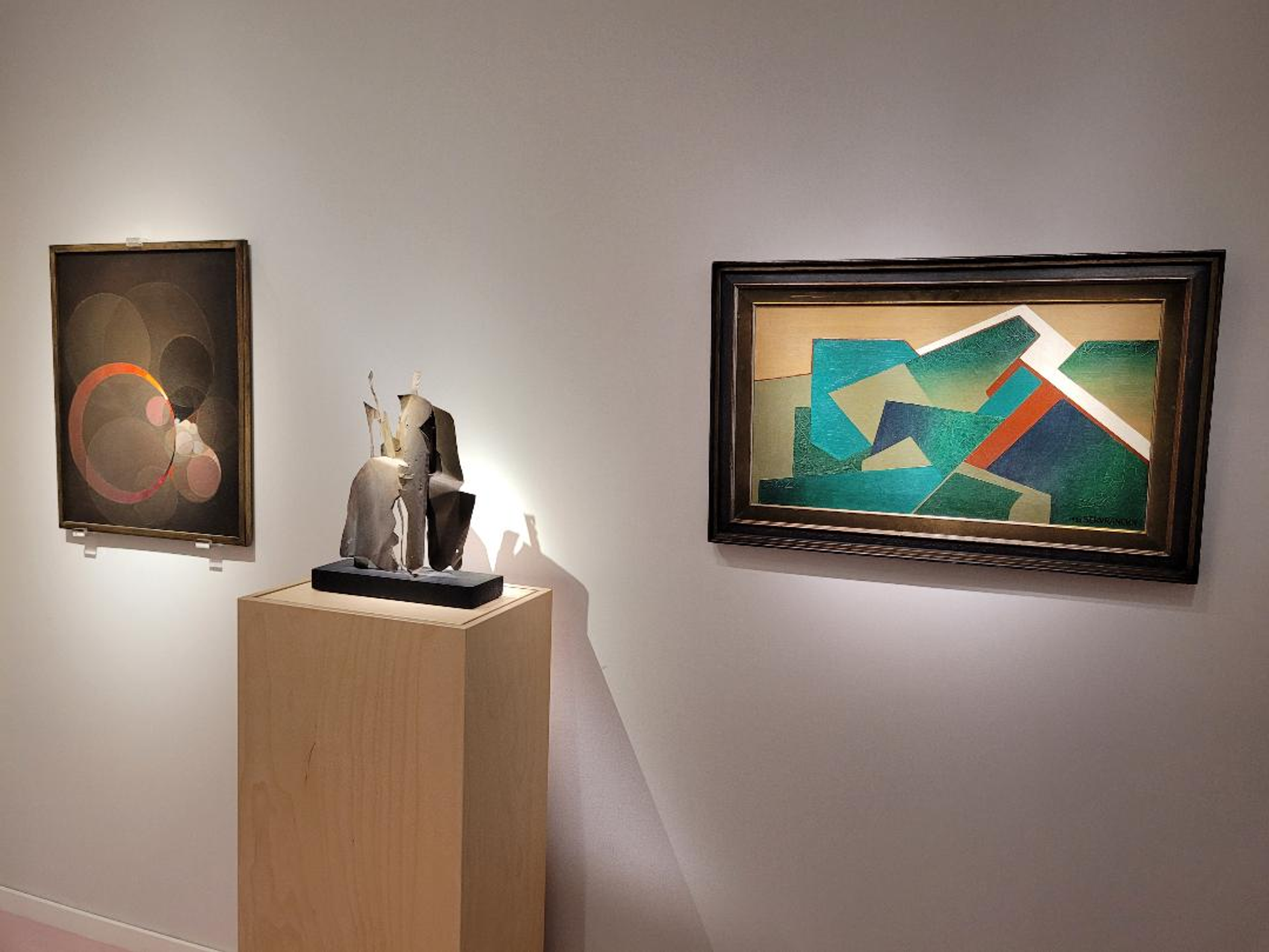 Pour sa première participation à la BRAFA, la spécialiste de Magritte Virginie Devillez consacre une partie de son stand à l’abstraction belge, courant qui connut un certain succès dès l’entre-deux-guerres outre-Quiévrain. Tel le peintre Victor Servranckx, qui signe ici une superbe composition à la palette verte, représentant la banlieue, proposée à plus de 100 000 euros.