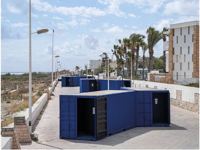 Le sol est couvert de sable. Dès que l’expérience commence, on se sent comme si on traversait le désert la nuit, auprès d’hommes, de femmes et d’enfants éreintés. Peu après, un hélicoptère vous repère. La police des frontières suit. Un agent vous pointe une mitraillette au visage et vous crie les instructions à suivre. Les chiens-policiers aboient et font mine de vouloir vous attaquer. Le bruit est accablant. L’effet, terrorisant.