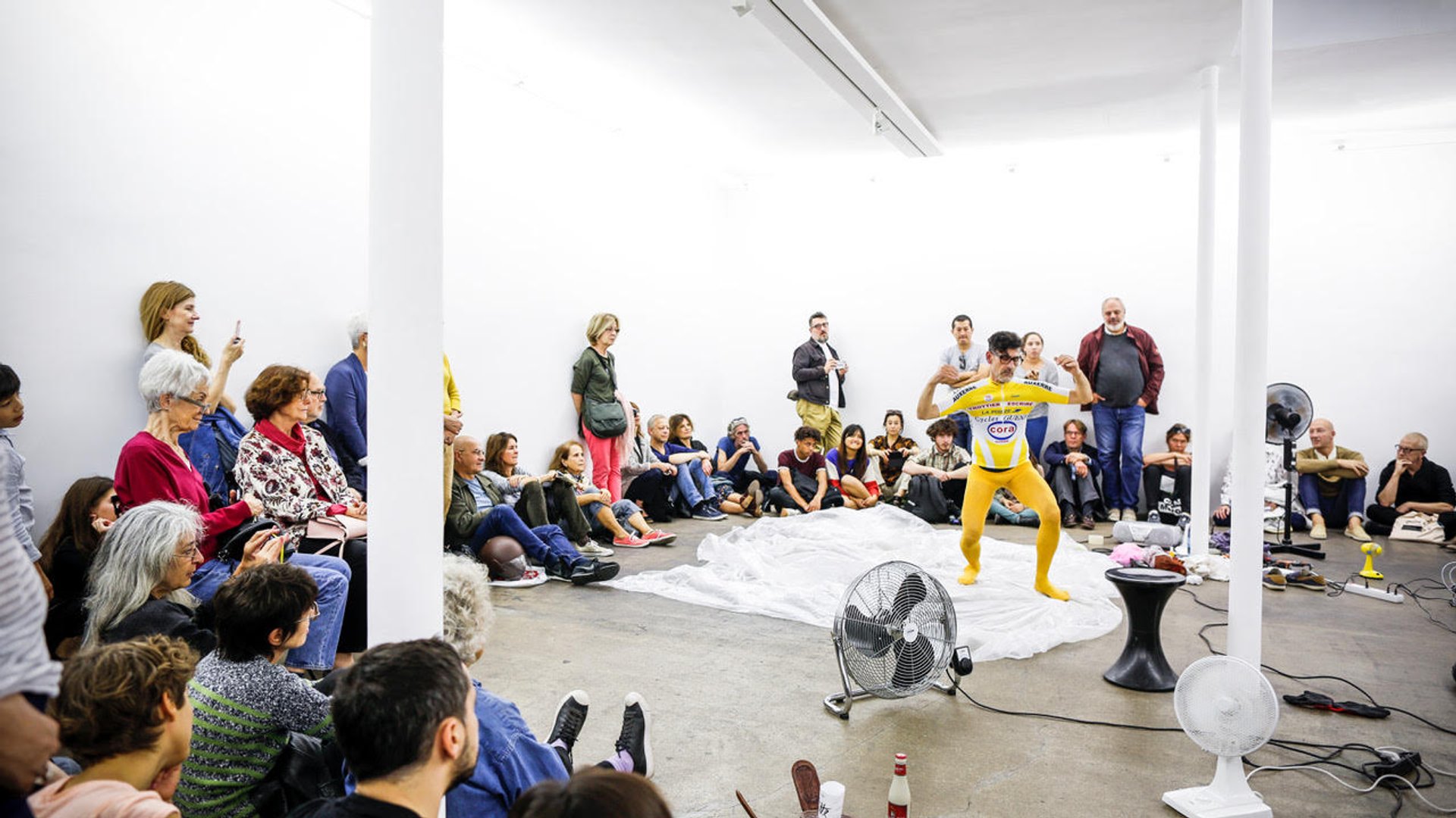 Performance de l’artiste Skall à la galerie Patricia Dorfmann, à l’occasion de « Un Dimanche à la Galerie » en 2017. © ACGP / Luccicanza