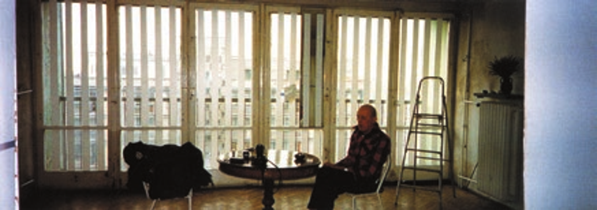 Pendant ce premier voyage, Daniel Buren est intervenu dans l’atelier que Krasinski partageait avec Henryk Stazewski qui était un peu plus âgé. Proche du groupe « Cercle et Carré » et d’« Abstraction Création », Stazewski était alors l’un des derniers représentants vivants du constructivisme, et avait aussi été l’un des fondateurs du musée de Łódz en 1931, premier musée d’art moderne au monde – avant même le MoMA qui a ouvert en 1939. Au onzième étage d’une HLM, surveillé les jours de vernissage par des policiers en civil, ce modeste appartement était l’un des lieux phares de la scène artistique polonaise des années 1970, un centre de rencontres et d’échanges quotidiens pour ceux qui s’intéressaient aux avant-gardes. L’espace était rempli de meubles et d’œuvres de Stazewski et de Krasinski. Une balle de ping-pong rouge flottait poétiquement dans l’air entre deux photos de joueurs grandeur nature. Des sculptures étaient posées sur des tables ou suspendues au pla fond. Des petites souris en fourrure étaient disposées un peu partout – pour ne pas trop se prendre au sérieux, aurait dit Stazewski à un critique. Daniel Buren s’est emparé des baies vitrées en y collant des bandes blanches adhésives, révélant par là le spectaculaire paysage urbain visible tout autour – et qui s’est beaucoup transformé depuis une quarantaine d’années. Puis Krasinski a fait passer par dessus, tout autour de la pièce, son célèbre ruban adhésif bleu. Plus tard, en 1985, Daniel Buren a construit la Cabane éclatée n°9 pour les œuvres de Krasinski au Moderna Museet à Stockholm.