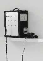 Camille Llobet, Graffiti, 2010, 9 lectures enregistrées, poste d’écoute, 3’-7’, Tolex, aluminium gravé, 9 embases jack, casque d’écoute, vue de l’exposition « Les Nouvelles Babylones », parc Saint-Léger, 2013. © Aurélien Mole, courtesy galerie Florence Loewy/Camille Llobet