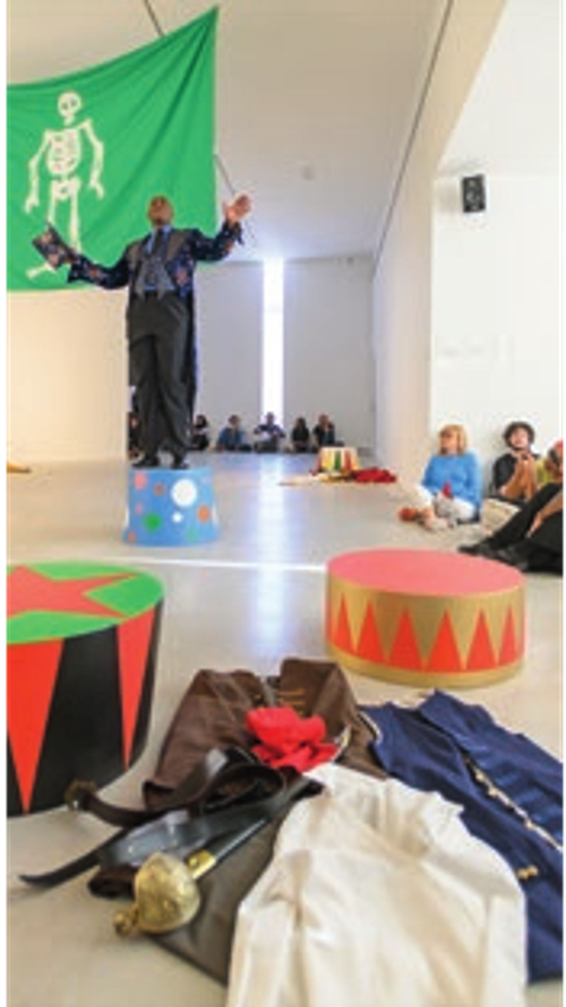La nuit dense du désert occupe cette année une place particulière dans la Biennale, plusieurs œuvres n’étant visibles qu’au coucher du soleil. C’est le cas en particulier dans « Look for Me All Around You », l’excellente plateforme de Claire Tancons, commissaire indépendante française, spécialiste de l’esthétique diasporique africaine, dans le champ de la performance en particulier. Les artistes qu’elle a invités – parmi lesquels Alia Farid – proposent pour la plupart des formes fugitives, comme une alternative à l’aspect sédimenté des grandes biennales internationales, et comme une image du monde d’aujourd’hui. Elle court d’ailleurs parfois le risque intéressant de ne donner à voir que des œuvres désactivées, comme autant de fragments à imaginer réunis. Dans l’une des cours de la vieille ville, la Libanaise Caline Aoun montre par exemple une installation lumineuse live, visible vers 19 heures, à l’heure où le soleil se couche à Beyrouth, flot de données et de lumière où l’œil devine un paysage dans un nuage coloré. Juste à côté, les scènes de cirque de l’Autrichien Peter Friedl, jonchées de costumes colorés, dessinent une contre-histoire poétique de la piraterie, tandis que la vidéo de Christopher Cozier, originaire de Trinité-et-Tobago, relie Sharjah à la Caraïbe à travers l’univers du pétrole – il a conçu une vidéo dans laquelle on voit des hommes construire un absurde échafaudage dans le désert, étrange perturbation du contexte quotidien devenue une attraction pour les enfants des environs. D’autres œuvres étaient aussi montrées à Kalba, dans une ancienne usine de glace où ont eu lieu des performances, en particulier celles d’Isabel Lewis et de Mohamed Bourouissa, Blida-Joinville – que nous n’avons pas pu voir.