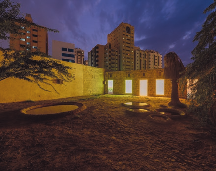 Après ce socle historique, dans l’autre volet de son projet « Making New Time », Omar Kholeif donne une vision du monde contemporain un peu plus attendue, avec une installation du Syrien Hrair Sarkissian sur des oiseaux menacés d’extinction, un hommage du Chilien Alfredo Jaar à trente-trois femmes exceptionnelles, et encore une chanson de la pluie composée en plein air par les artistes nigérians Otobong Nkanga et Emeka Ogboh dans l’une des cours intérieures de la vieille ville reconstruite – Otobong Nkanga est d’ailleurs la lauréate du prix de la Biennale. Ce paysage sonore, où des bassins d’eau salée dessinent comme des cratères dans le sable, est un peu écrasé par la lumière du midi, et prend toute son ampleur dans celle du soir.