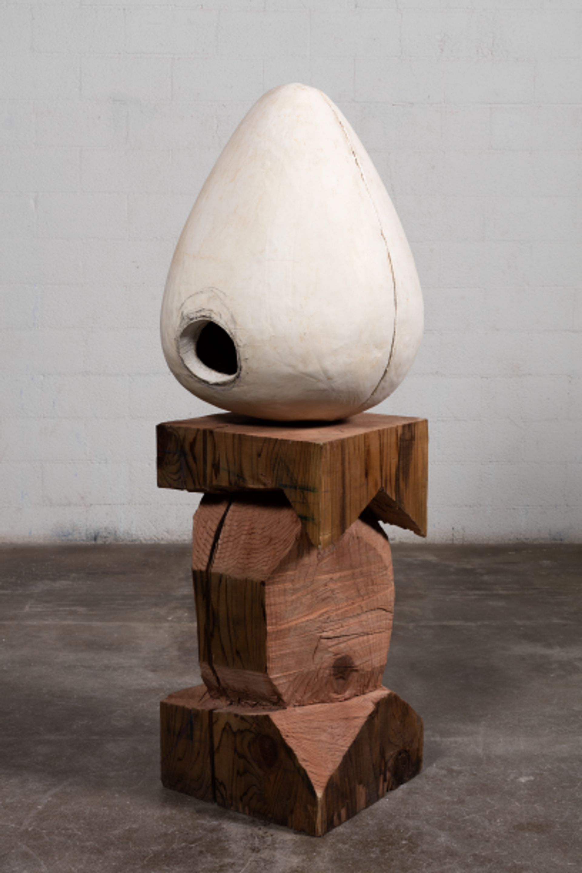 Thomas Houseago, Untitled (Egg), 2015, Tuf-Cal, chanvre, fer à béton, bois, mine de plomb, crayons de couleur. Courtesy de l’artiste, Los Angeles. © Thomas Houseago. Photo Fredrik Nilsen Studio