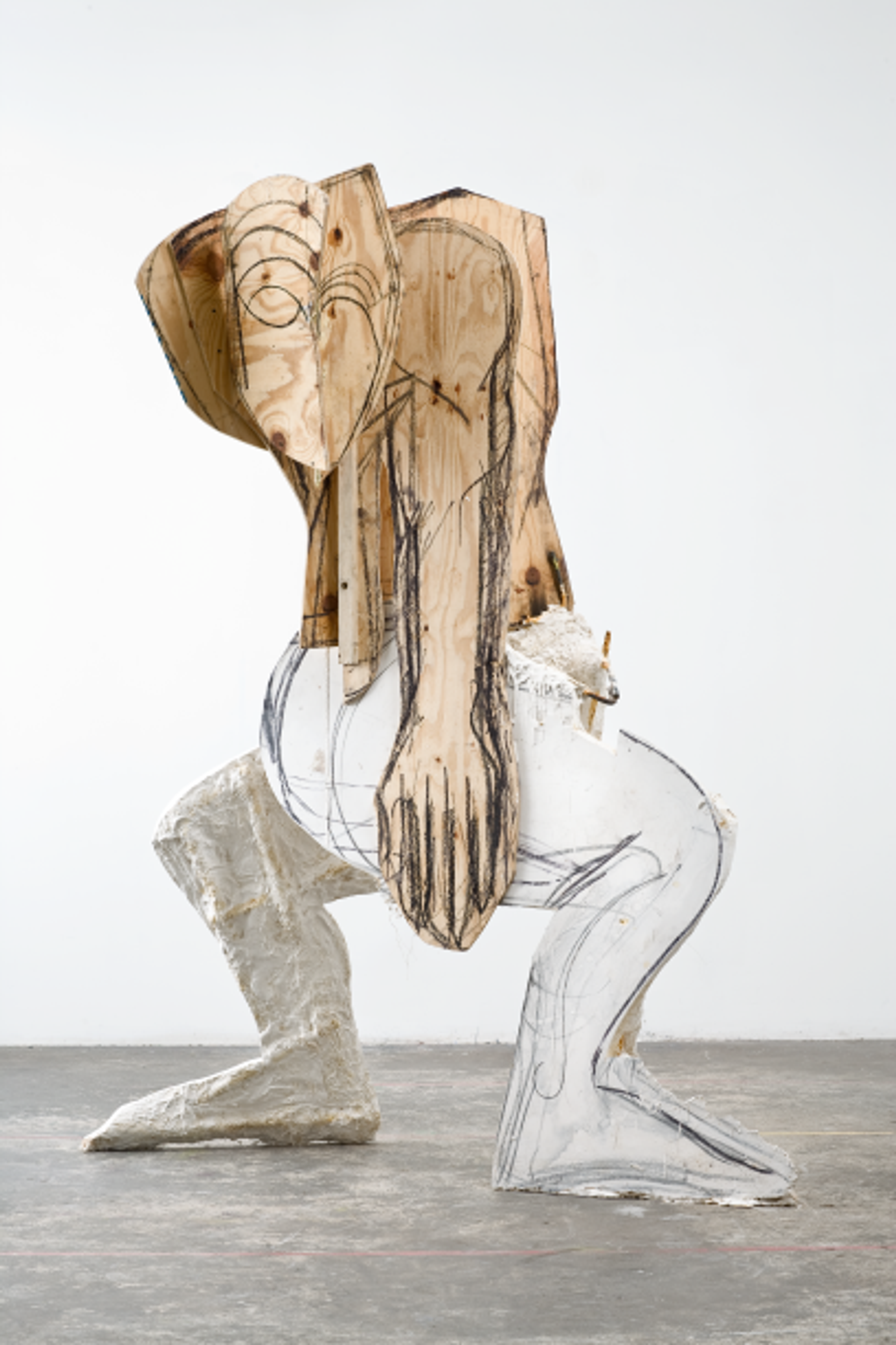 Thomas Houseago, Serpent, 2008, Tuf-Cal, chanvre, fer à béton, Oilbar, mine de plomb, bois, Collection Baron Guillaume Kervyn de Volkaersbeke. © Thomas Houseago. Photo Fredrik Nilsen Studio