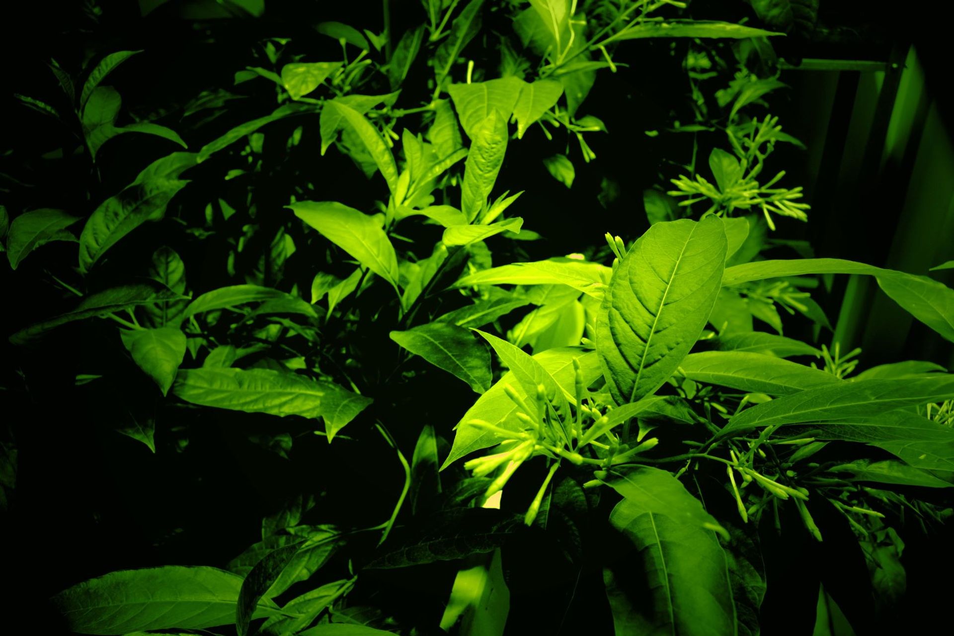 Hicham Berrada, Mesk-ellil, 2015-2019, cestrum nocturnum, rythme circadien inversé, LED clair de lune, éclairage horticole, temporisateurs, sept terrariums en vitre teintée. Courtesy de l’artiste et kamel mennour, Paris-Londres © Hicham Berrada