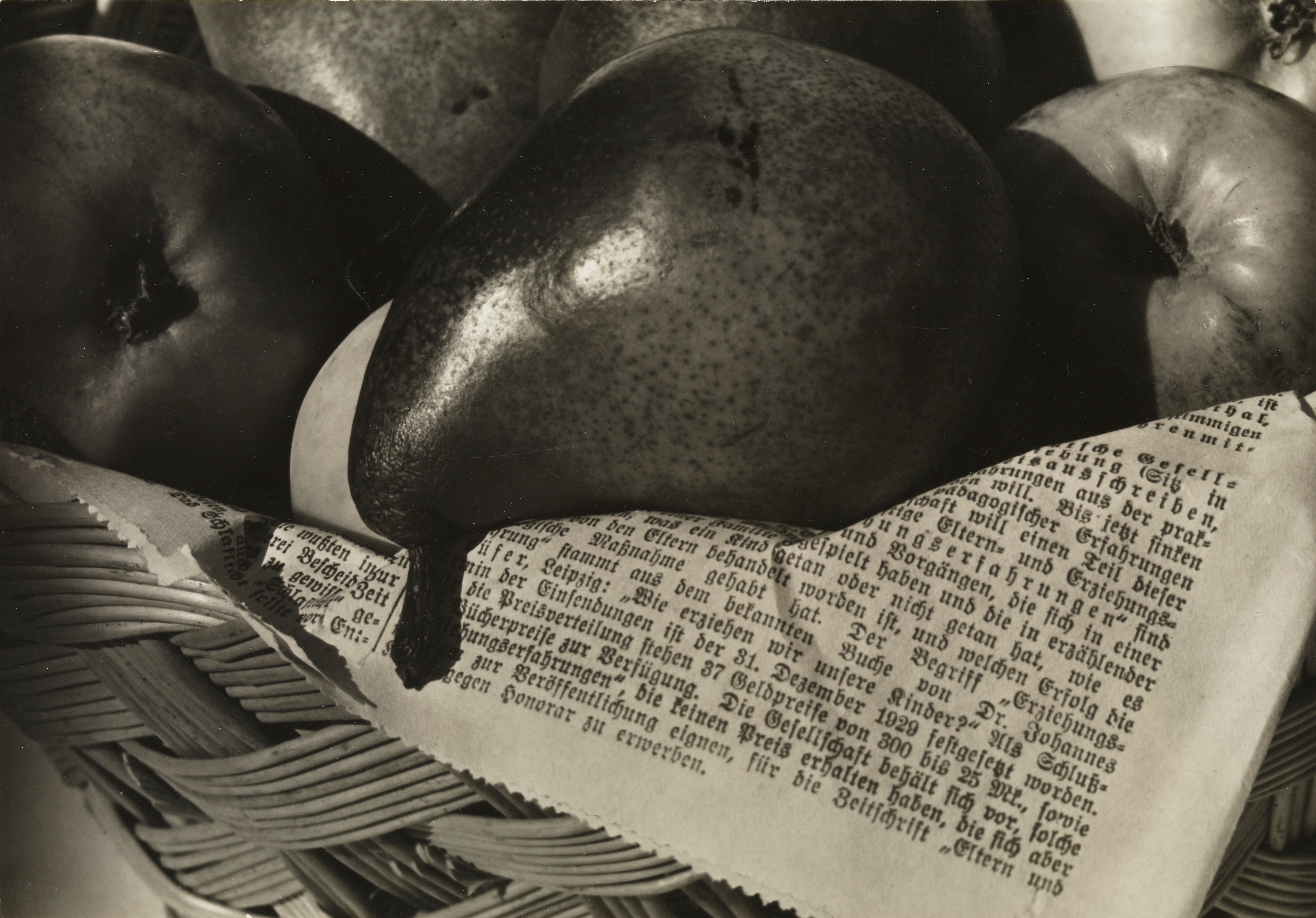 Aenne Biermann, Fruit Basket, 1931, épreuve gélatino-argentique, 16,6 x 23,6 cm. Photo : Sibylle Forster // « Aenne Biermann. Familiarity with things », jusqu’au 13 octobre, Pinakothek der Moderne, Munich, Allemagne, www.pinakothek-der-moderne.de © Ann und Jürgen Wilde Foundation, Pinakothek der Moderne, Munich