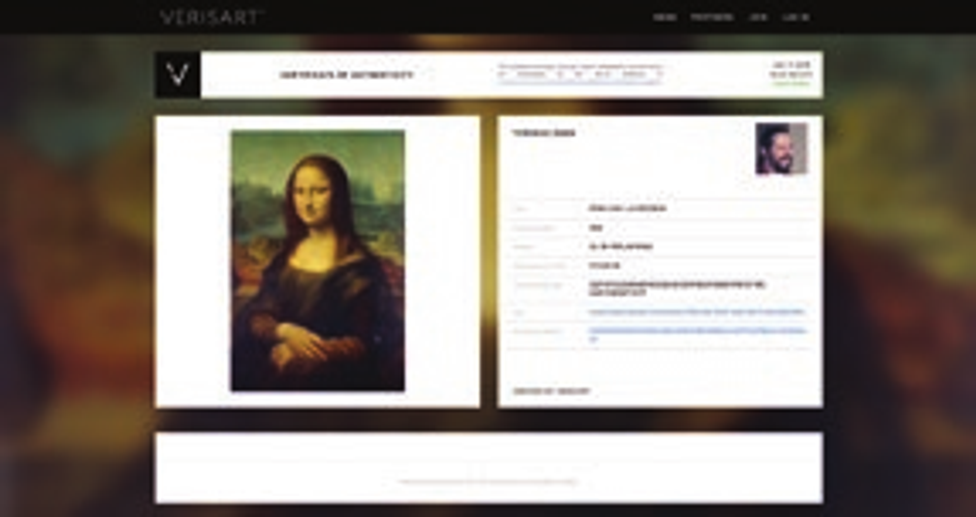 Certificat d’authenticité du « propriétaire » de la Joconde de Léonard de Vinci émis par Verisart. Verisart