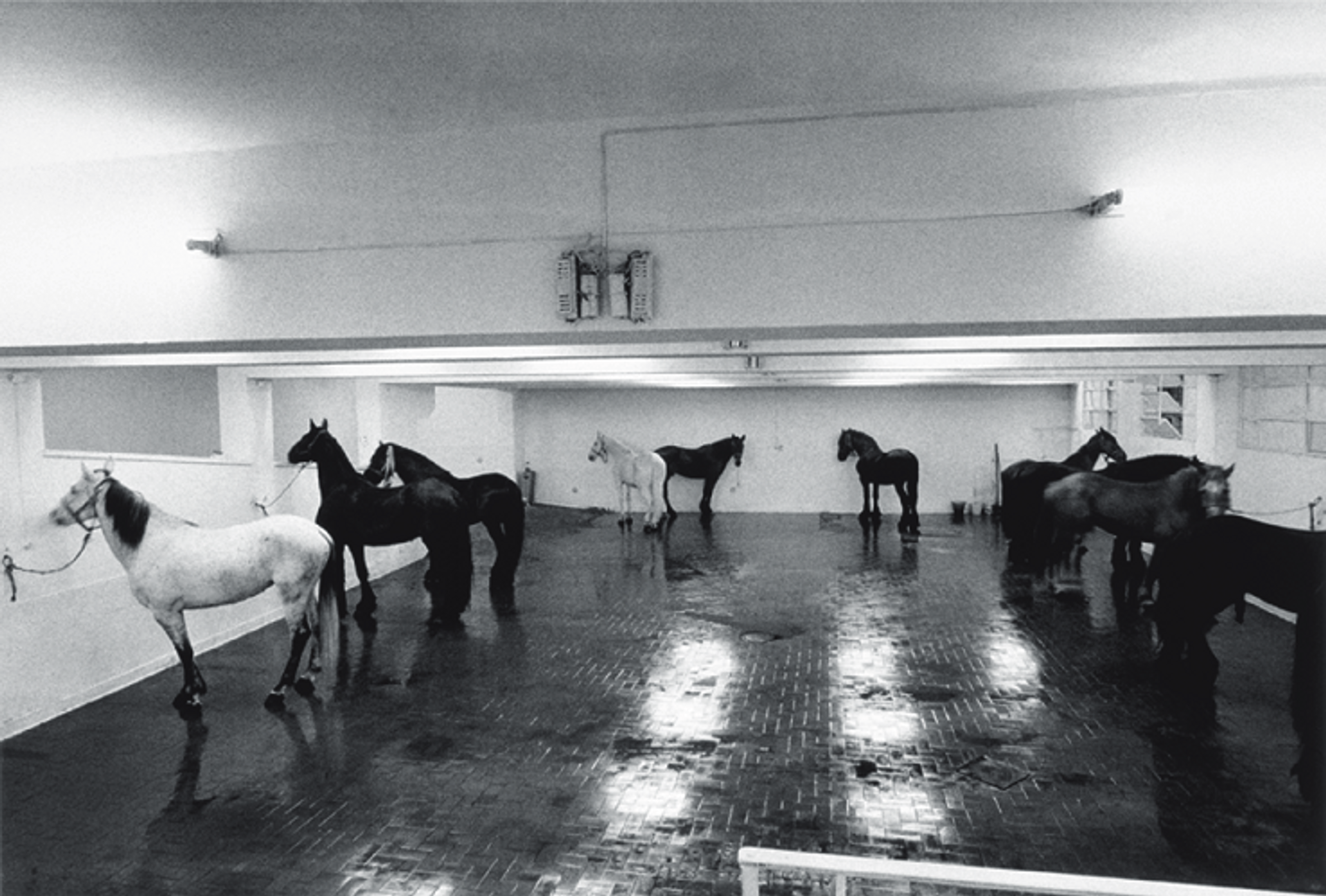Jannis Kounellis, Douze chevaux vivants, L’Attico, garage via Beccaria, Rome, 14 janvier 1969. © Claudio Abate, courtesy Fabio Sargentini/Archives L’Attico © Claudio Abate, courtesy Fabio Sargentini / Archives L’Attico