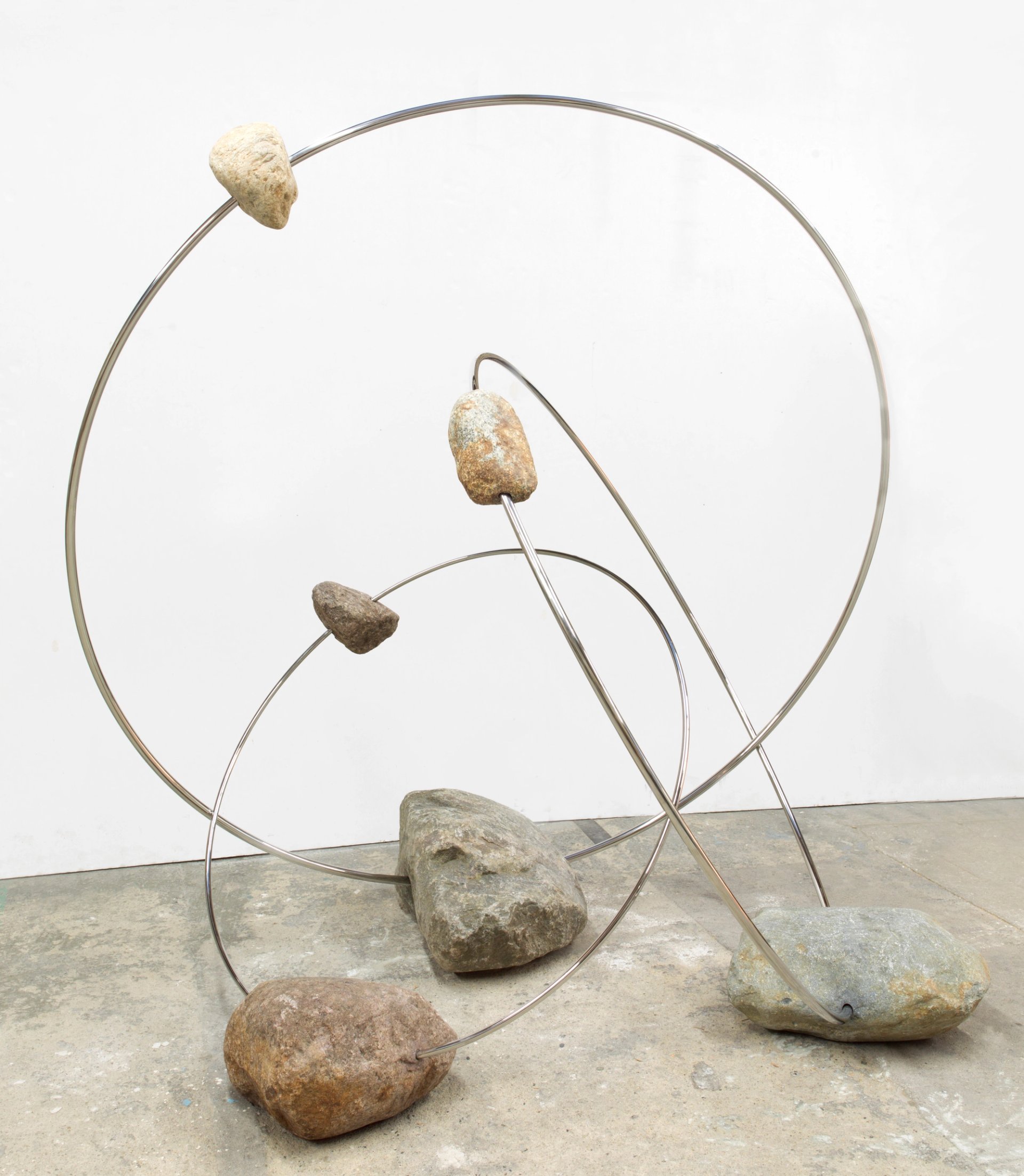 Alicja Kwade, Orbit, 2018, acier, rochers. © courtesy de l’artiste et de kamel mennour, Paris/London