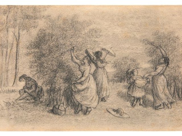 À la fin de son cursus à l’Institut d’études politiques de Toulouse, tandis qu’il s’imaginait créer un label de musique, Ambroise Duchemin décide de changer ses projets du tout au tout. Il propose alors à son père d’effectuer un stage d’un an au sein de sa galerie pour se donner le temps de réfléchir. Le jeune homme commence à chiner et se laisse prendre au jeu. Bien que ses proches lui conseillent de multiplier les stages auprès de confrères ou de grandes maisons de ventes, il lance sa propre structure à peine deux ans après avoir mis les pieds rue de Louvois. « J’avais alors dans l’idée qu’en créant un site Internet où je présenterais de jolies feuilles bien encadrées dont les prix n’excéderaient pas les 5 000 euros, je toucherais une nouvelle clientèle. Avec le recul, je me rends compte que l’exercice m’a permis d’exercer mon appréciation critique et de définir un certain goût, le mien. Immanquablement, quand j’ai organisé la première exposition pour lancer le site en 2015, j’ai été plus surpris encore que les visiteurs de découvrir le fil conducteur commun entre toutes les œuvres. » Ambroise Duchemin est parvenu à étonner. Face à son premier catalogue de dessins en 2017, les plus anciens se sont dit qu’il avait l’audace de présenter des feuilles d’artistes réputés passés de mode, tandis que les plus jeunes ont été gagnés par ce principe de dessins de charme à prix abordable. Pour Benjamin Peronnet, l’ex-directeur international du département des dessins anciens de Christie’s, qui vient d’ailleurs d’ouvrir une galerie en chambre rue de Louvois, « ce qui est remarquable chez Ambroise, c’est que, tout en gardant une certaine fidélité, il a trouvé une véritable voie. Le risque était d’être trop marqué par l’empreinte du père, mais il a su s’en démarquer assez vite. Là où il est très fort, c’est qu’il parvient à parier sur des artistes qui ne sont pas forcément au premier rang ou dont l’œuvre est assez modeste. Il sait choisir la feuille qui aura une certaine résonance, qui va plaire et toucher. » Ambroise Duchemin semble prendre un vrai plaisir à dénicher le dessin le plus émouvant jamais réalisé par un artiste a priori peu novateur, voire assommant du XIXe siècle français, celui qui va instiller un doute dans l’esprit du connaisseur et l’inviter à réviser son jugement. Un exemple éloquent : Le Guet-Apens d’Alexandre Louis Leloir, acquis par le Petit Palais (Paris) en 2017, une petite merveille d’un peintre dont les autres compositions manquent souvent d’esprit mais qui a su, là, créer une image frappante. Un autre sera présenté cette année lors d’une exposition en marge du Salon du dessin : « De l’avis général, le graveur Charles Émile Jacque est peut-être l’artiste le moins original du XIXe siècle mais, en proposant cette année un de ses dessins érotiques, j’espère dévoiler une autre facette de sa créativité. »
