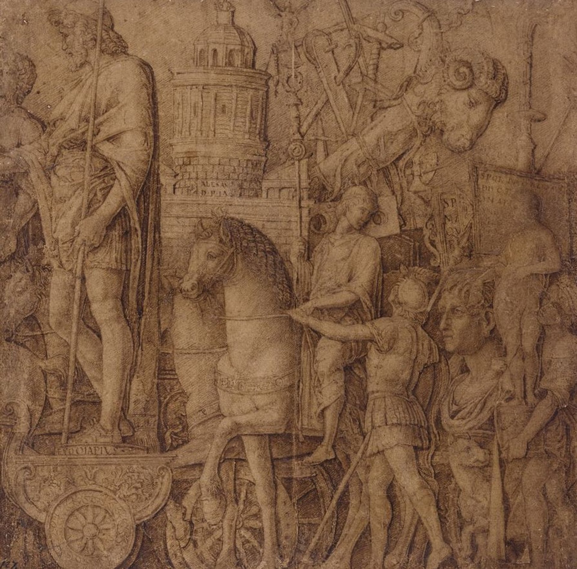 Mantegna, esquisse préparatoire pour Les Chars triomphaux, les trophées, les machines de guerre des Triomphes de César. Courtesy de Sotheby’s, D.R.