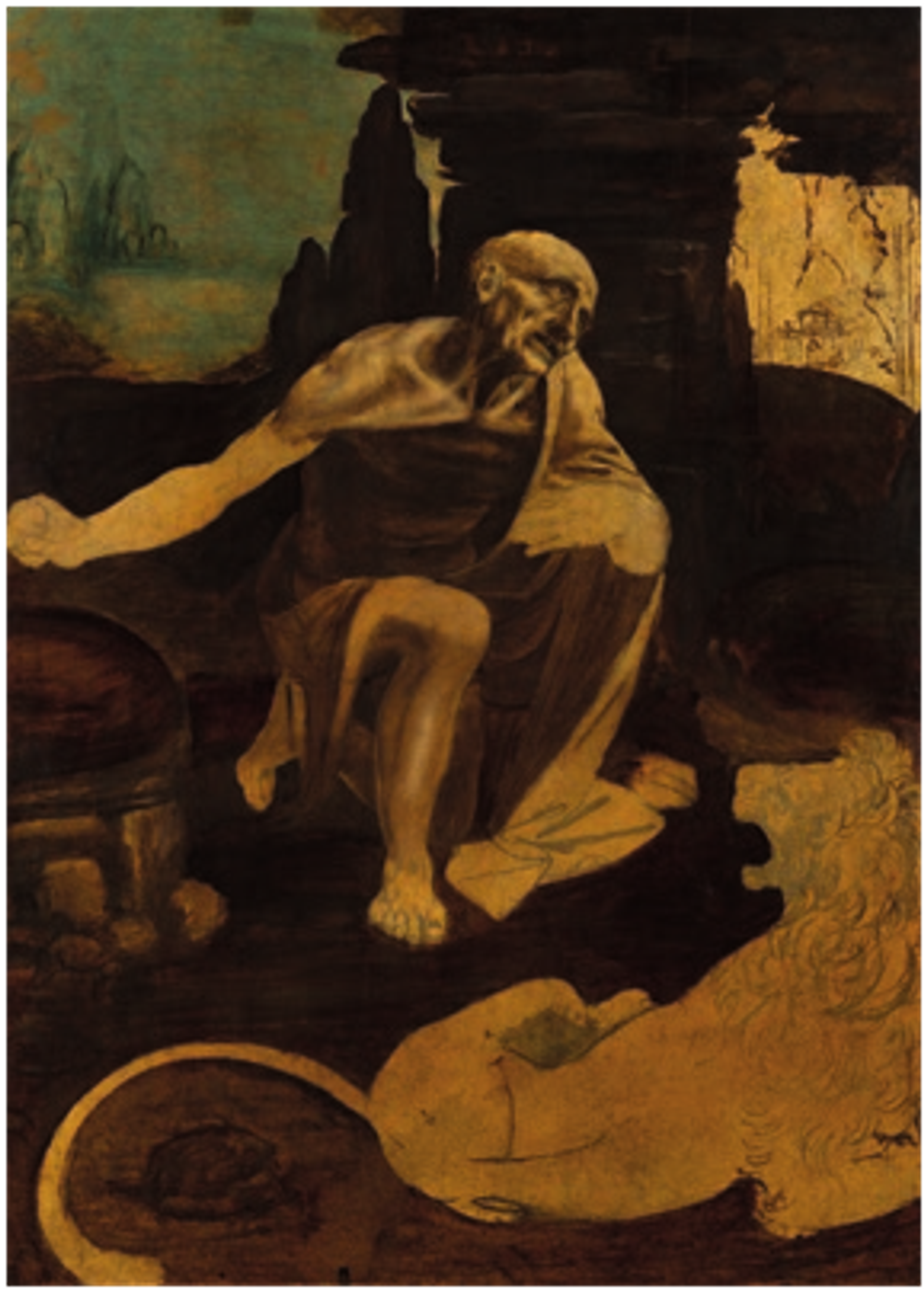 Léonard de Vinci, Saint Jérôme pénitent, entre 1480 et 1490, huile sur bois (noyer), Musei vaticani, Pinacoteca vaticana, Cité du Vatican. © Governatorate of the Vatican City State – Vatican Museums
