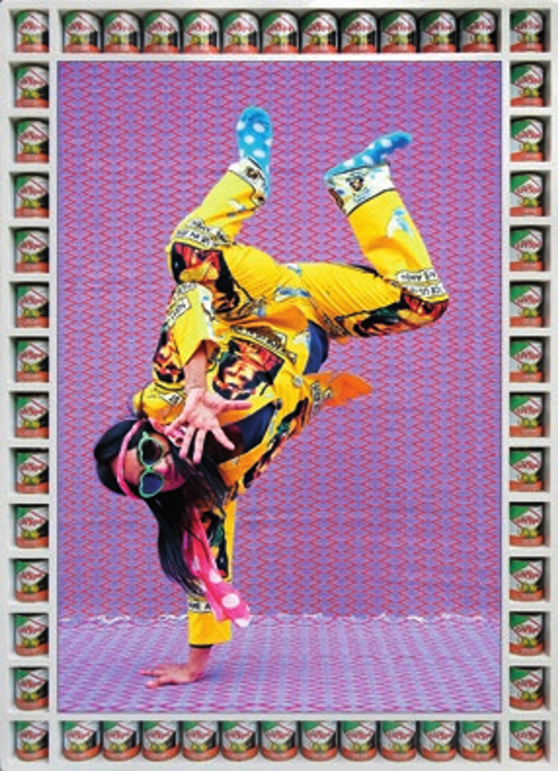 À l’hybridation des cultures et des mondes, Hassan Hajjaj ajoute celle des techniques et des médiums. Les photographies sont serties dans de lourdes bordures de bois où s’en-castrent des boîtes de conserve ou des canettes de Coca. Les rebuts du quotidien sont mués en objets pop, et les photographies encadrées en produits décoratifs, au même titre que le mobilier qu’il réalise à partir d’«ustensiles du pauvre» recyclés : cagettes de soda transformées en bancs, panneaux routiers convertis en tables basses… Photographe, designer, créateur de mode, réalisateur de clips et de films, Hassan Hajjaj vend à parts égales ses photographies, son mobilier et sa ligne de vêtements streetwear, RAP. À 58 ans, il tient boutique dans le quartier londonien branché de Shoreditch, anime un riad qui fait aussi office de show-room, de studio photo et de salon de thé à Marrakech (où il vit en parallèle de Londres). Il est exposé dans plusieurs galeries internationales, dont Yossi Milo, à New York. Surnommé « Andy Walhoo » par son ami Rachid Taha (walhoo signifie « je ne possède rien » en arabe), il endosse son surnom warholien, tout en puisant à bien d’autres influences : les « studiotistes » africains, comme Malik Sidibé ou Seydou Keïta, la culture black américaine – qui s’est renforcée depuis qu’il a montré ses œuvres au Los Angeles County Museum of Art et au Memphis Brooks Museum of Art –, sans oublier l’esprit déjanté du melting pot londonien.
