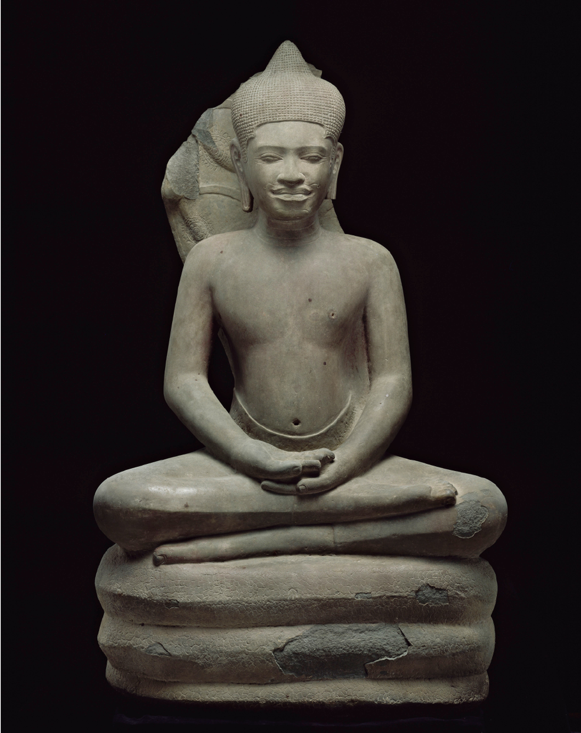 Bouddha en méditation sur le naga, Cambodge, Siem Reap, temple du spécialiste de l’Asie du Sud-Est, ont ainsi pu Bayon, art khmer post-angkorien, XI e siècle, grès, 103 x 62 x 43 cm. Envoi del’École française d’Extrême-Orient, 1922. © RMN-Grand Palais (MNAAG, Paris). Photo : Thierry Ollivier