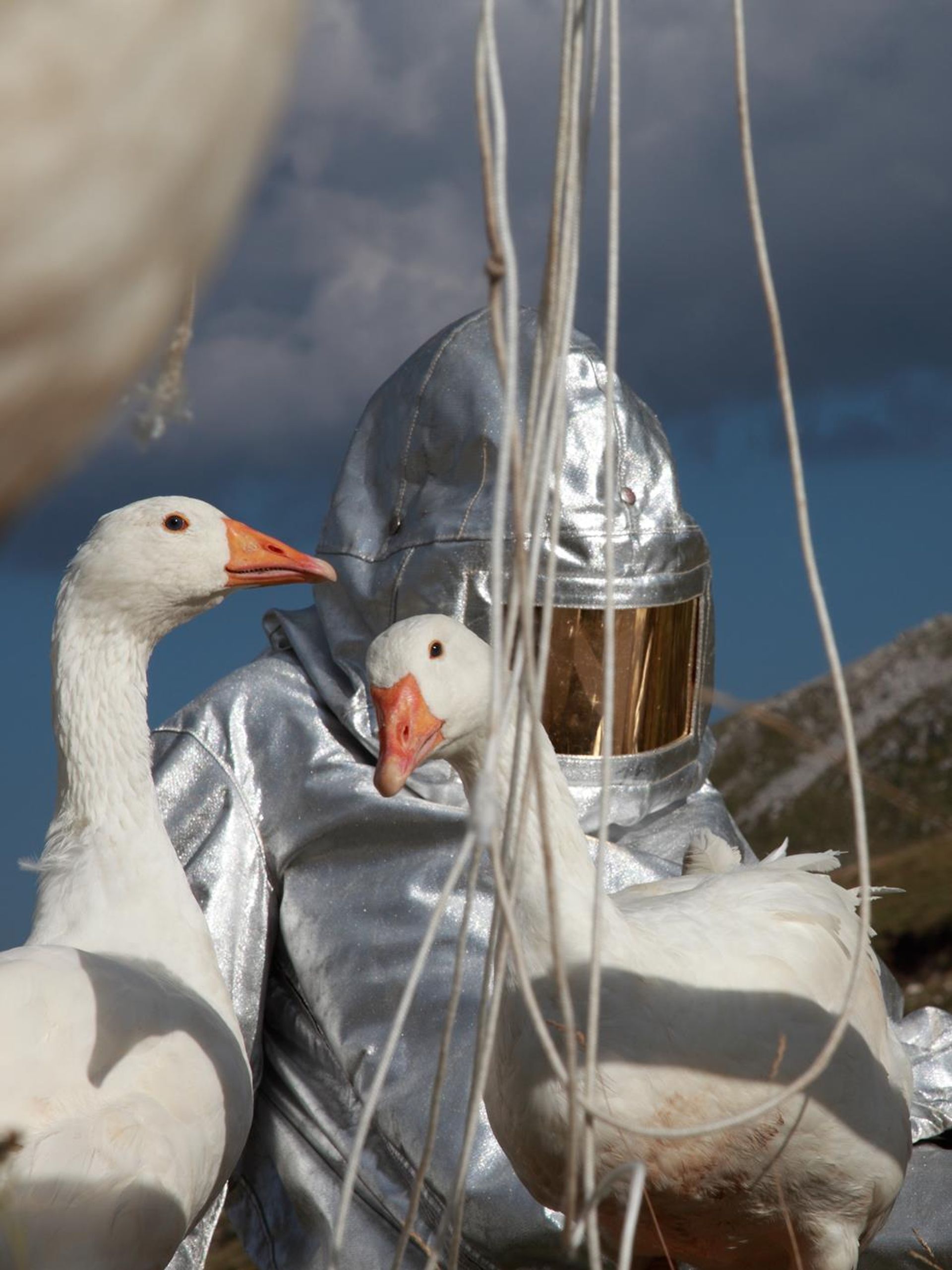 CosmoCaixa, le musée des sciences de Barcelone, accueille Moon Goose Colony d’Agnes Meyer-Brandis, un projet simulant une colonisation de la Lune par douze oies, montré en 2011 à Liverpool.