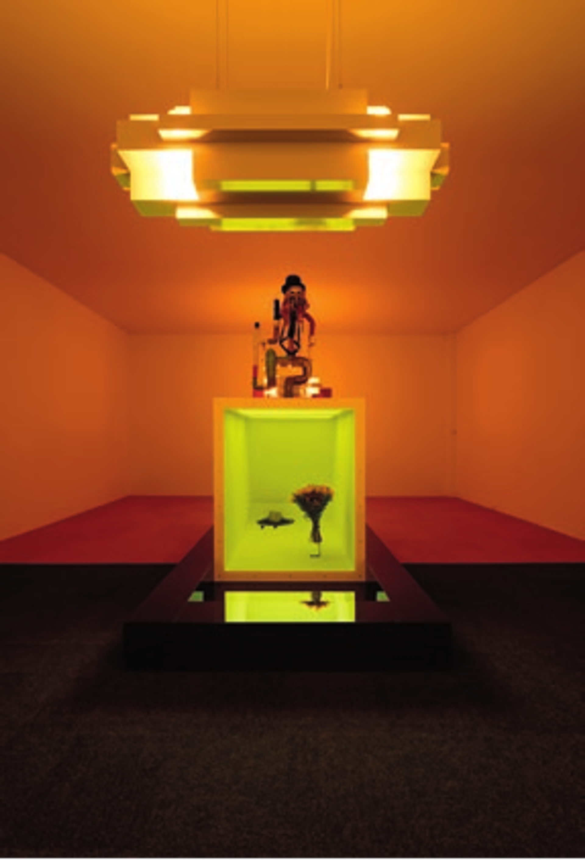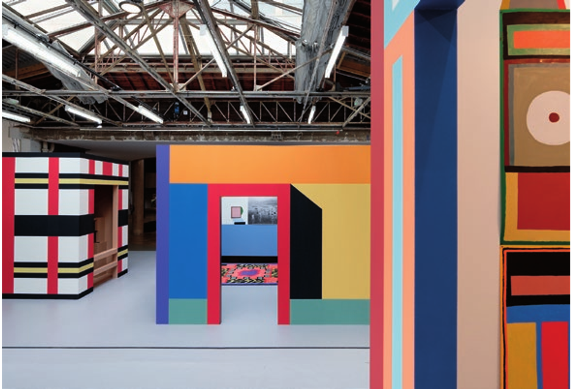 Il est intéressant de constater que les questionnements politiques, sociaux, écologiques posés par cette jeune génération d’artistes s’incarnent désormais dans des formes qui, il n’y a pas si longtemps, auraient été jugées néo-académiques, voire régressives. L’étonnement peut naître devant certaines débauches sculpturales en carton-pâte ou produites à l’imprimante 3D, aux accents surréalistes et expression-nistes, qui sont peut-être finalement filles de la décomplexion formelle postmoderne (version néofauve, voire Transavanguardia, plutôt que Pictures Generation *1). À quelques mètres des lugubres autels en fibre de verre de Claus, les remarquables cellules colorées de Nathalie Du Pasquier, membre historique du groupe milanais Memphis, abritent des ensembles constitués de peintures abstraites, d’archives photo-graphiques et de tapis à motifs, dans une jouissance décorative magnifiquement assumée. Elles semblent curieusement confirmer le point de vue postmoderne adopté, plus ou moins consciemment, par les commissaires dans leur appréhension de cette « autre scène ».