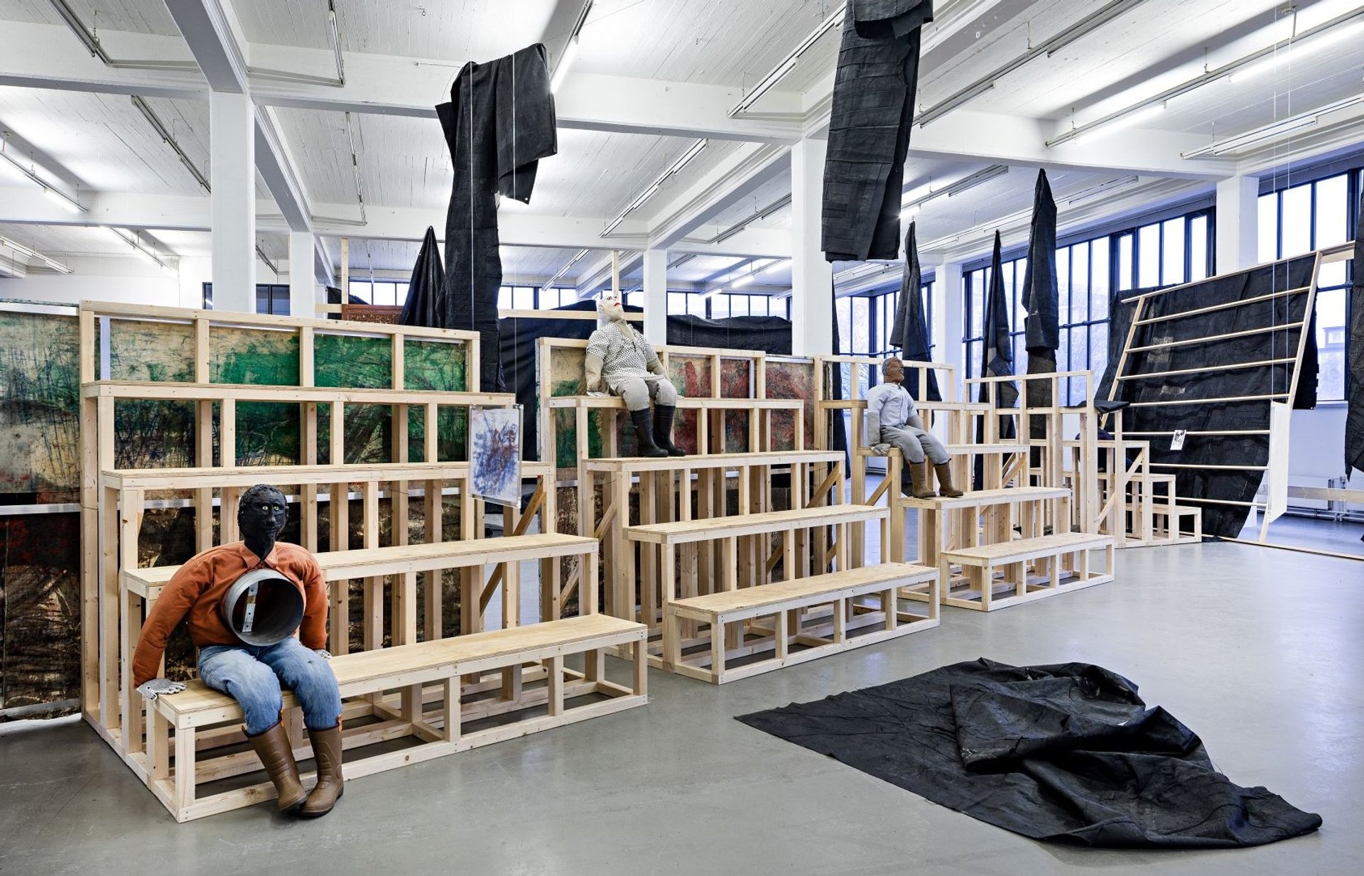 Vue de l’exposition « Oscar Murillo, Horizontale Dunkelheit auf der Suche nach Solidarität », 2019. Photo : Fred Dott. © Kunstverein in Hamburg