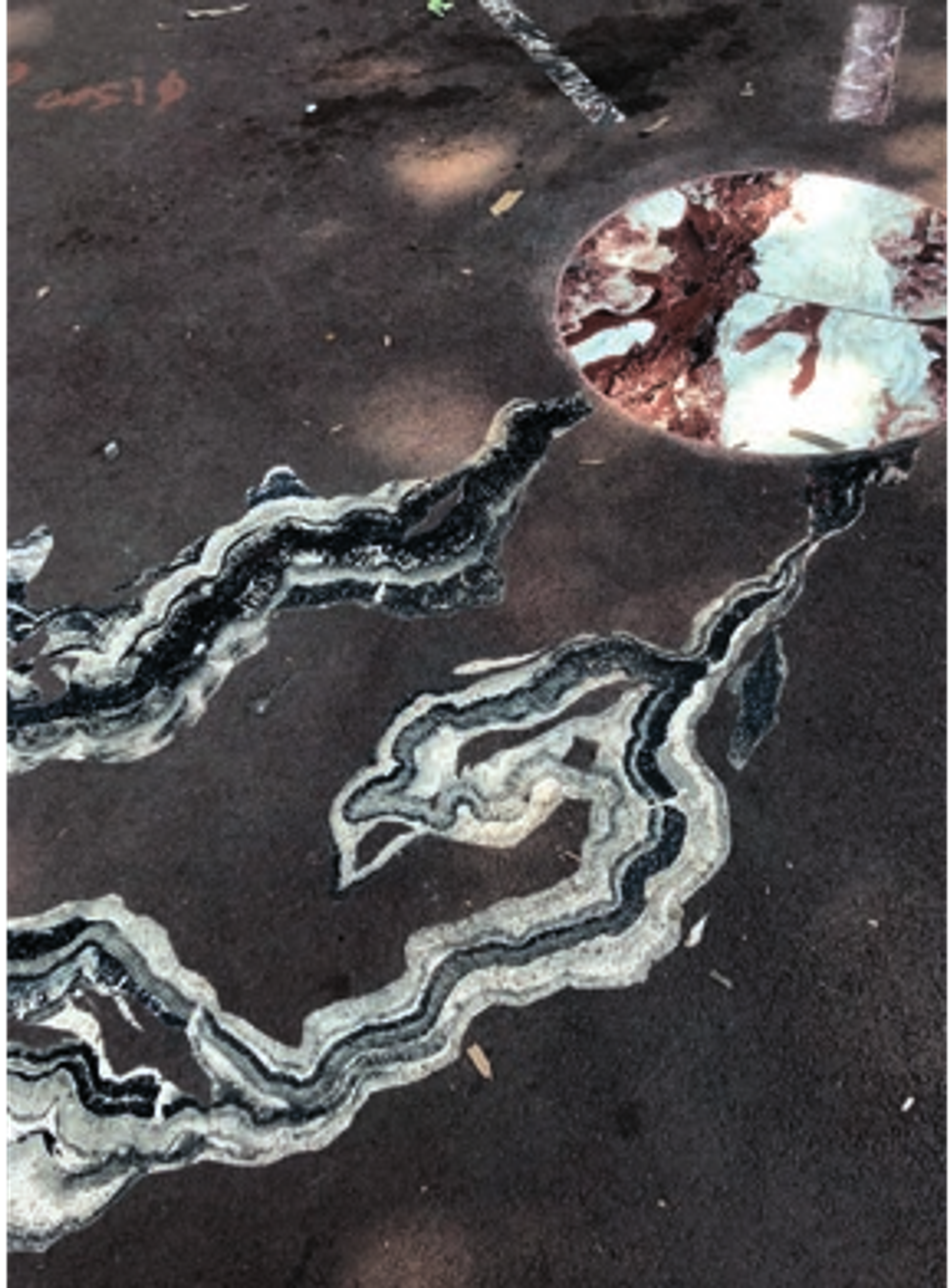 Abdelkader Benchamma, Cosma, 2019, incrustations de plaques de marbre de Rabat (Maroc) et de Saint-Pons-de- Thomières (Tarn, France), peintures, place Roger Salengro, Montpellier, dans le cadre de « 100 artistes dans la ville », MoCo. Courtesy de l’artiste, D.R.