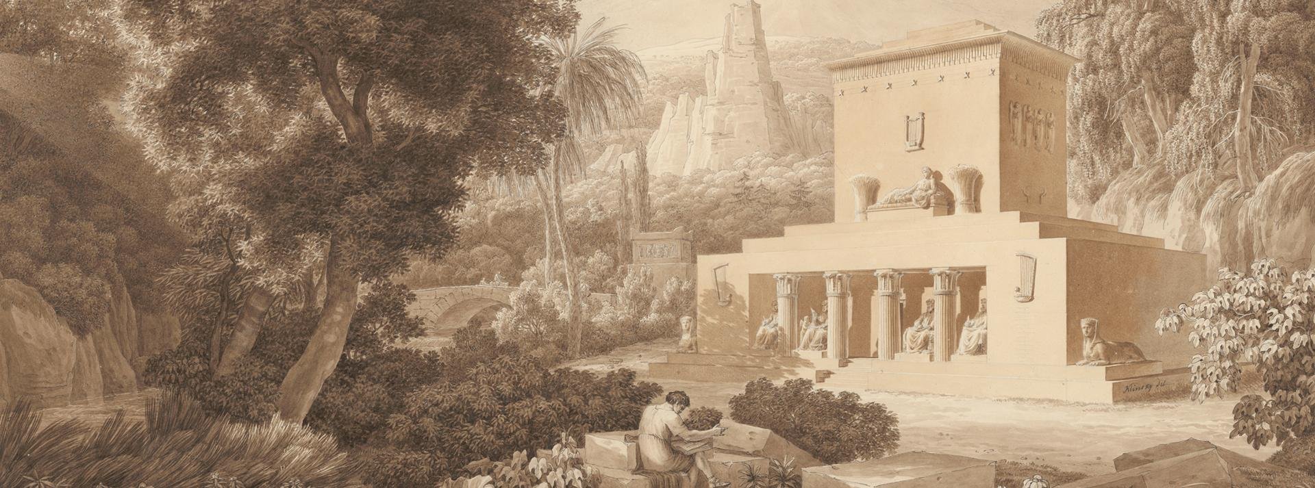 Jacob Wilhelm Mechau et Johann Gottfried Klinsky, Projet pour un monument dédié à Klopstock, 1806. © Albertina Museum, Vienne