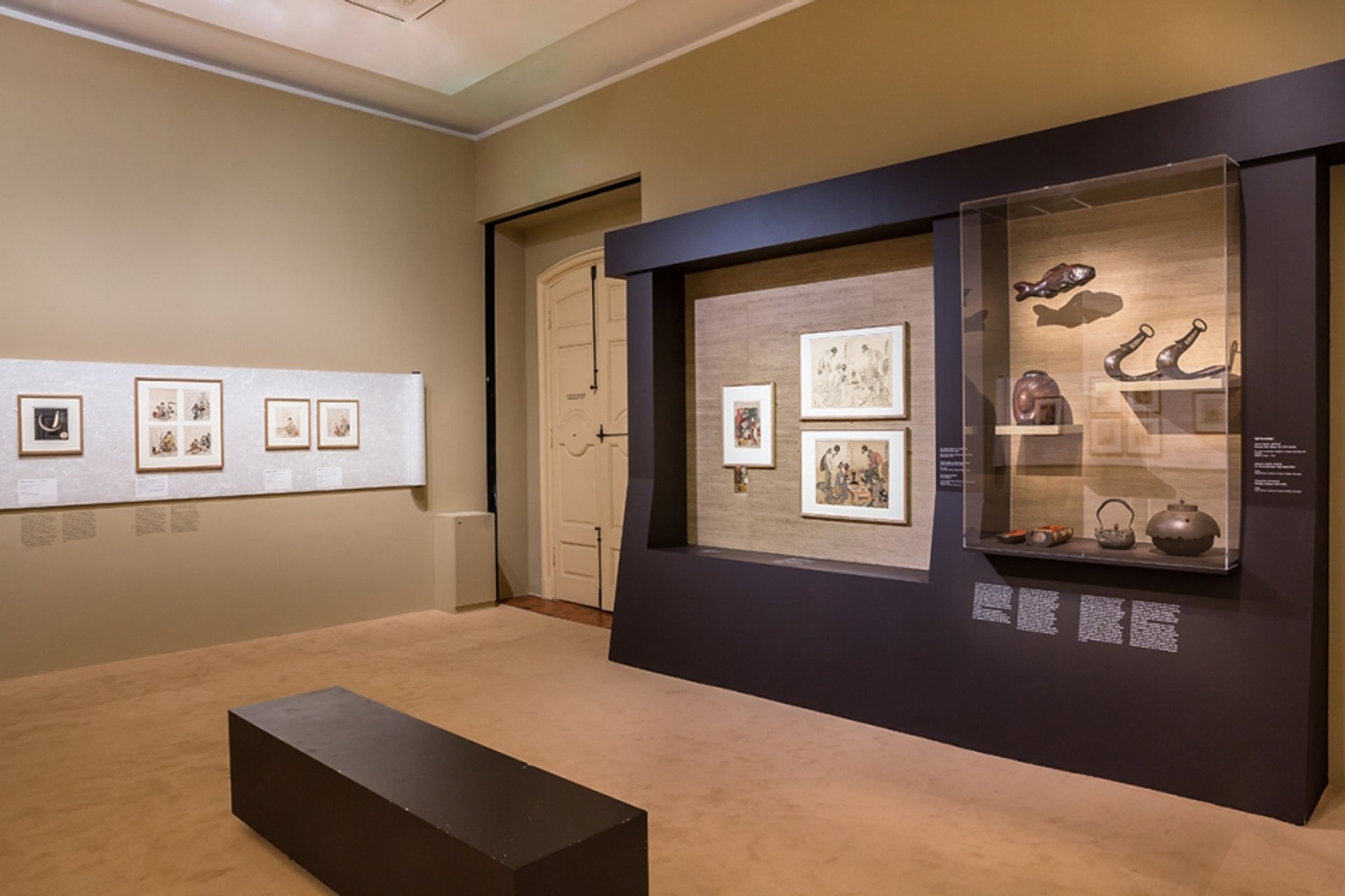 Vue de l’exposition « Hokusai, Hiroshige, Utamaro. Les grands maîtres du Japon. La collection Georges Leskowicz ». © Culturespaces / S. Lloyd