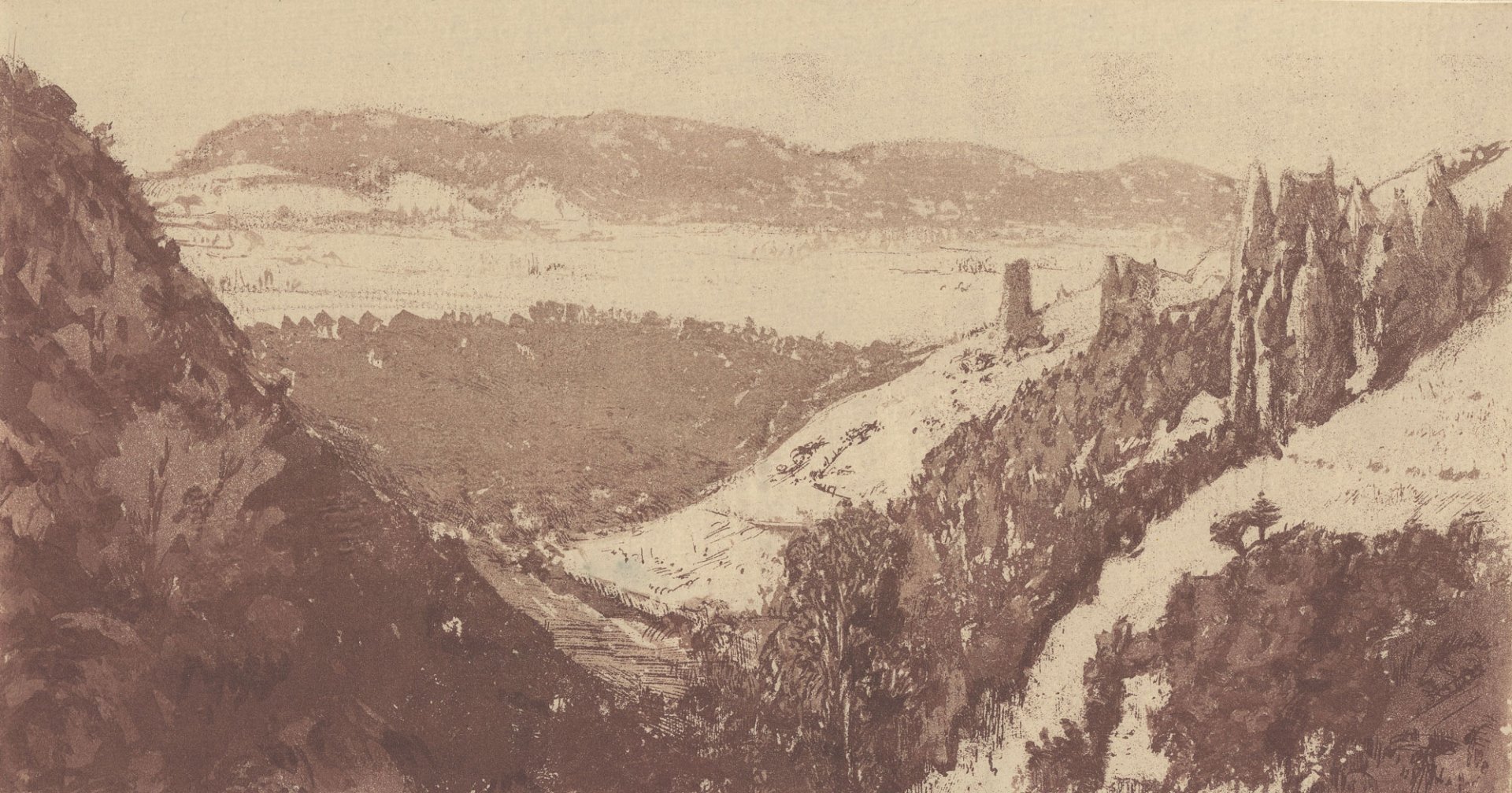 Gérard de Palézieux, Vallon de la Raspille, vernis mou et aquatinte sur cuivre, sur Chine appliqué sur papier vélin, 160 mm x 300 mm, 1992. © Fondation William Cuendet & Atelier de Saint-Prex, Vevey