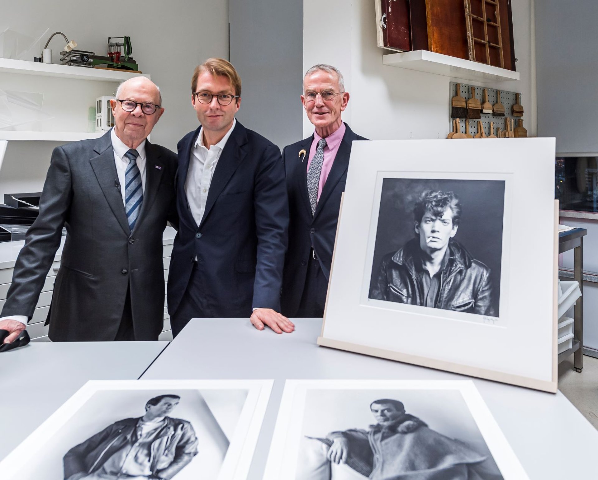 Hans van Manen, Taco Dibbits (directeur du Rijksmuseum) et Henk van Dijk avec les photographies de Robert Mapplethorpe. ©Jan-Kees Steenman / Rijksmuseum