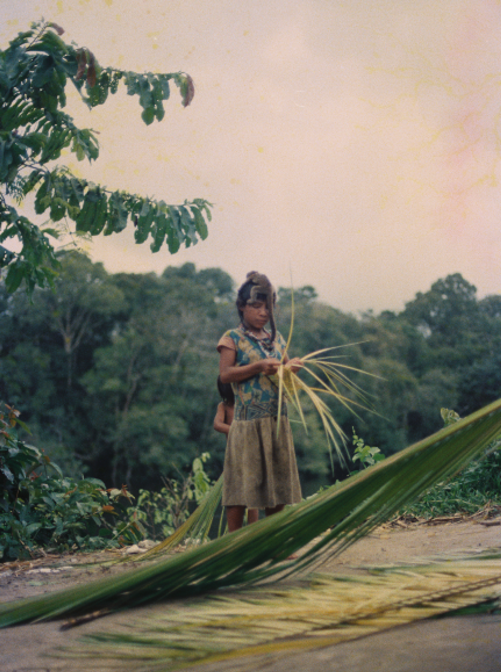 Passeur d’expériences plutôt que prescripteur d’un savoir, Bismuth plonge avec un film-fleuve de plus de quatre heures le spectateur-témoin dans le quotidien d’un campement. On y voit la confection d’un arc ou celle d’un panier tressé – qui serviront respectivement à la chasse et à la cueillette –, la préparation de repas, des rituels de danses nocturnes, les heures qui passent dans un flot ininterrompu de conversations et de chants. L’environnement sonore et sa prosodie si particulière étourdissent presque, d’autant que les images n’offrent ni traduction, ni sous-titres. On comprend alors qu’il s’agit d’abord d’observer et de préserver, avant de déchiffrer et de maîtriser l’habitat naturel et les civilisations autochtones de cette forêt-monde. Comme le rappelle le philosophe Emanuele Coccia dans son audacieux ouvrage La Vie des plantes. Une métaphysique du mélange (Rivages, 2016), « on ne peut séparer – ni physiquement ni métaphysiquement – la plante du monde qui l’accueille. Elle est la forme la plus intense, la plus radicale et la plus paradigmatique de l’être-au-monde ».