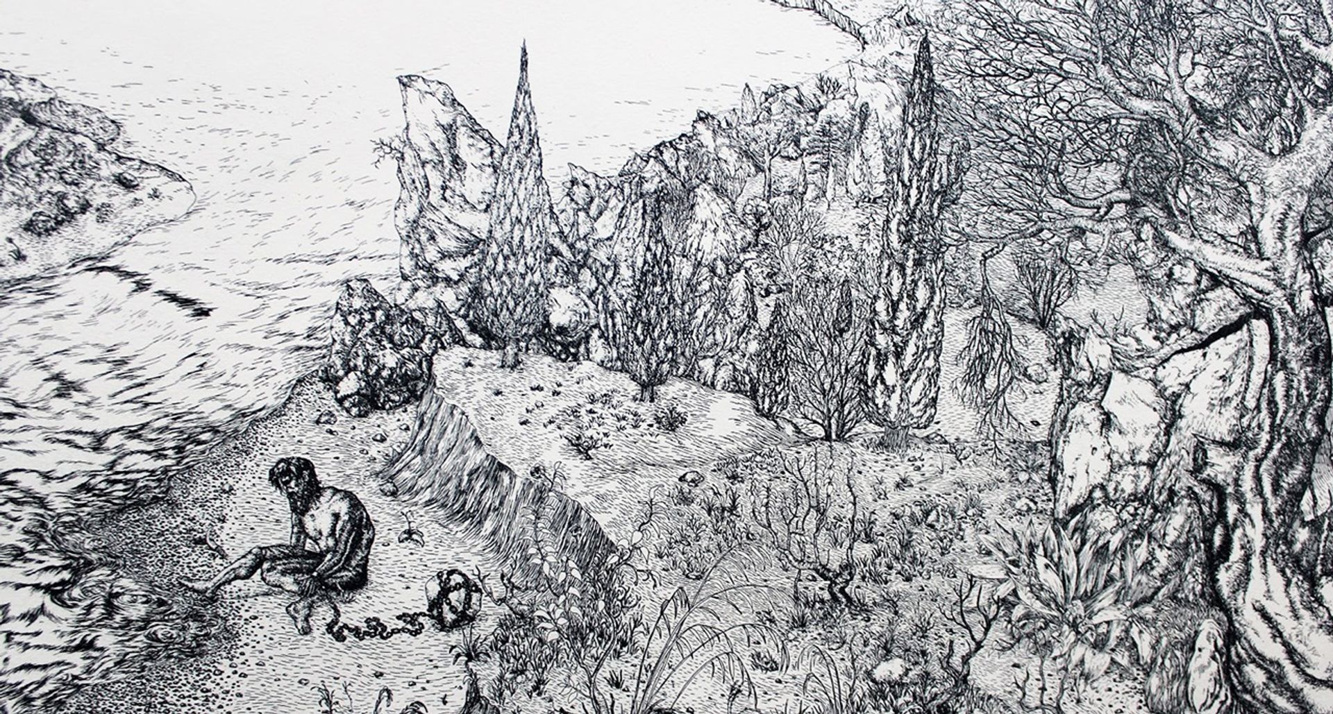 Yann Legrand, Lativm, 2017, eau-forte et pointe sèche, 95 cm x 50 cm. © Yann Legrand