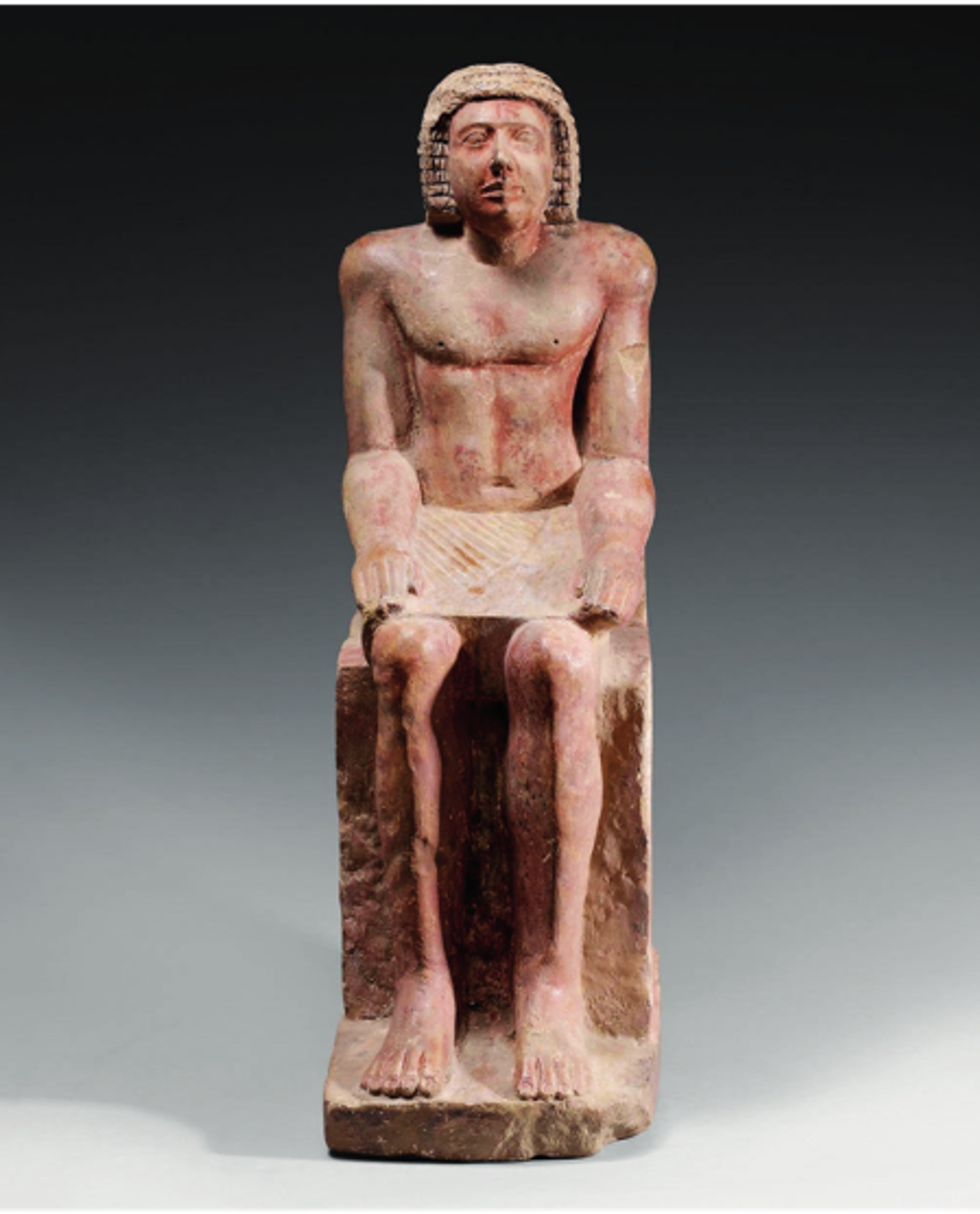 Statue assise au nom de Hem Menou, Égypte, Ancien Empire, VIe dynastie, calcaire. Prix : autour de 300000 euros. © Galerie Cybele