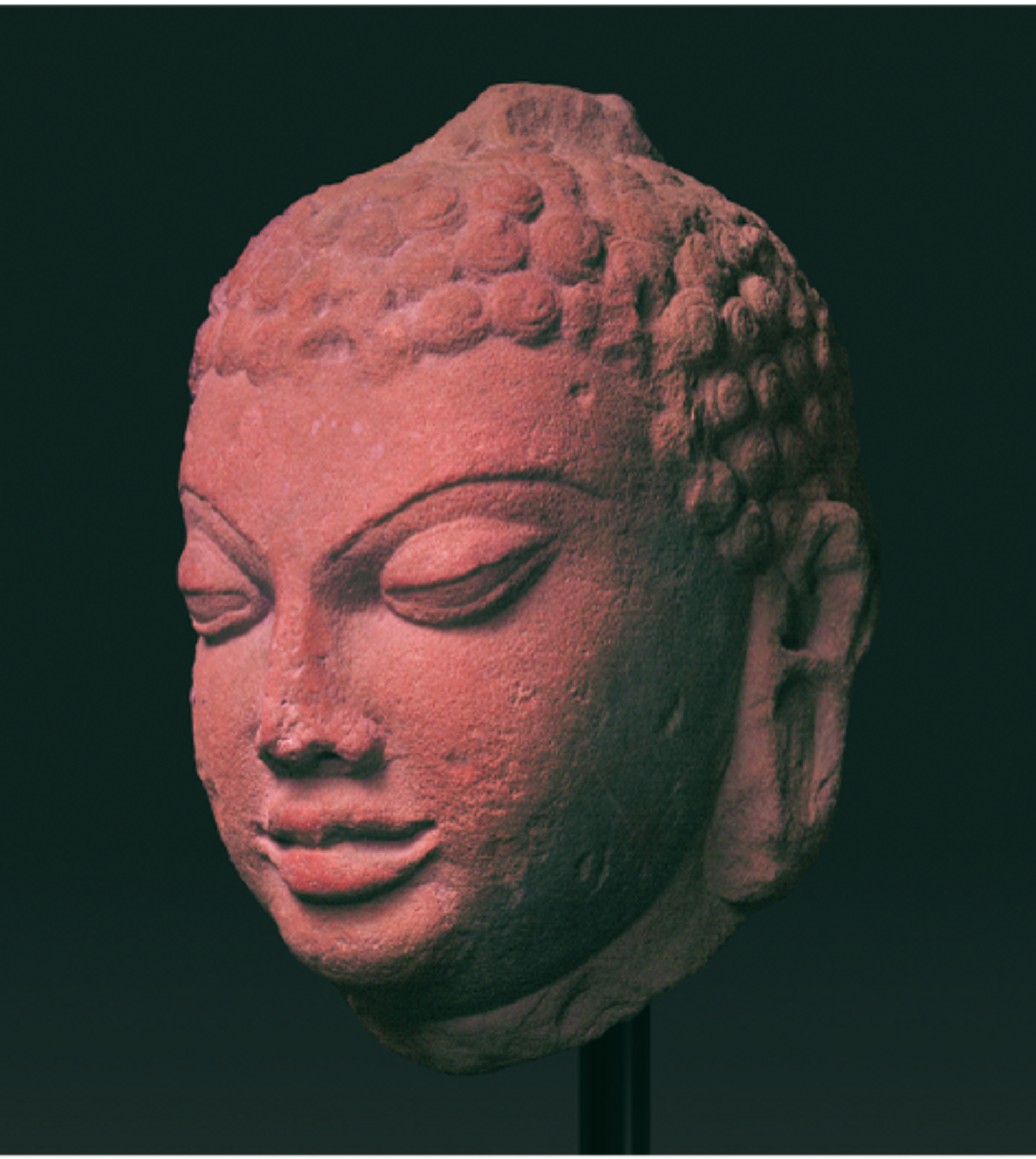Tête de Bouddha, grès rouge, Inde du Nord (Mathura), période Gupta, début du ive siècle. Prix : 60000 euros. © Galerie Christophe Hioco
