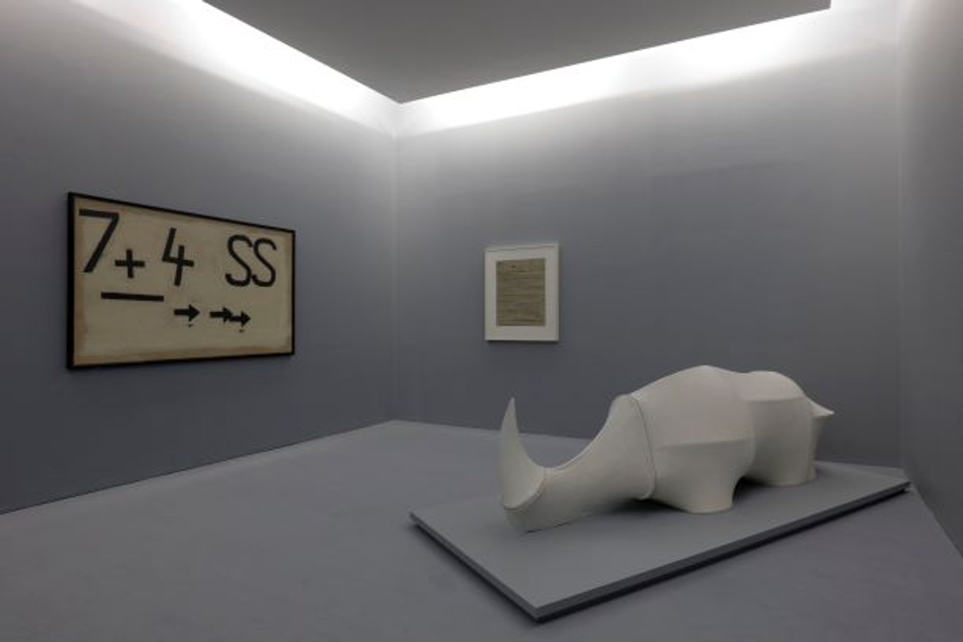 C’est dans une atmosphère à la lumière tamisée, absorbée par une scénographie où domine la couleur grise des murs et du sol que se développe l’exposition que l’historien de l’art Gabriele Guercio et le directeur du Madre Andrea Viliani consacrent à Marcello Rumma. Cette mise en espace pour le moins très assumée plonge le visiteur dans la pénombre, dans une atmosphère quasiment de deuil qui éteint les œuvres et leur fait perdre de leur éclat, mais aussi de leur visibilité, une manière selon les commissaires de renforcer le mystère de la disparition d’un jeune homme mort à l’âge de 28 ans et de parler de l’incomplétude de sa vie. Intellectuel, éditeur, collectionneur, initiateur de projets d’exposition, Marcello Rumma (1942-1970) fut une figure centrale de la scène littéraire et artistique italienne des années 1960. L’exposition « I sei anni di Marcello Rumma 1965-1970 » (Les six années de Marcello Rumma 1965-1970) retrace sa brève, mais fulgurante présence, sans tomber dans l’écueil de l’hagiographie. Sur les deux étages en entier du Madre, sont présentés – à partir d’un parcours chronologique séquencé de documents d’archives rares (lettres, photographies, livres…) et d’œuvres pour la plupart issues de la collection de la galeriste Lia Rumma, son épouse, et parfois complétées de prêts provenant d’institutions italiennes et étrangères – ce qu’ont été les rencontres, les choix et les engagements de Marcello Rumma.