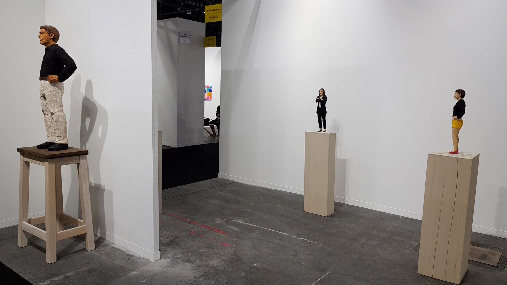 La galerie luxembourgeoise Nosbaum Reding a réuni un ensemble de sculptures en bois de l’Allemand Stephan Balkenhol, dont le prix pour les moyens formats est de 54 000 francs suisses.