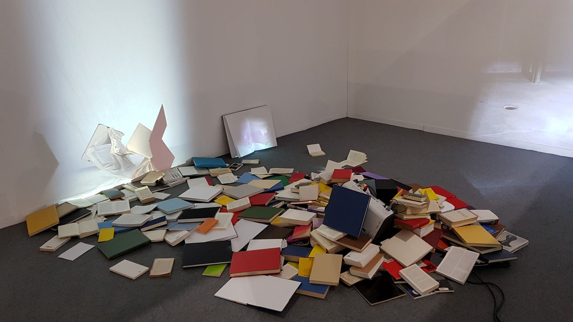 La galerie Gisèle Linder (Bâle) présente trois œuvres vidéo de la Suisse Ursula Palla autour de la lecture et du livre, avec certains qui tombent, et d’autres lus par des enfants. Ces éditions de trois vont de 2 800 francs suisses à 5 900 francs suisses.