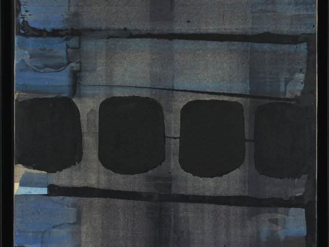 Pierre Soulages, Brou de noix sur papier, 48,2 × 63,4 cm, 1946, musée Soulages, Rodez. © Archives Soulages
