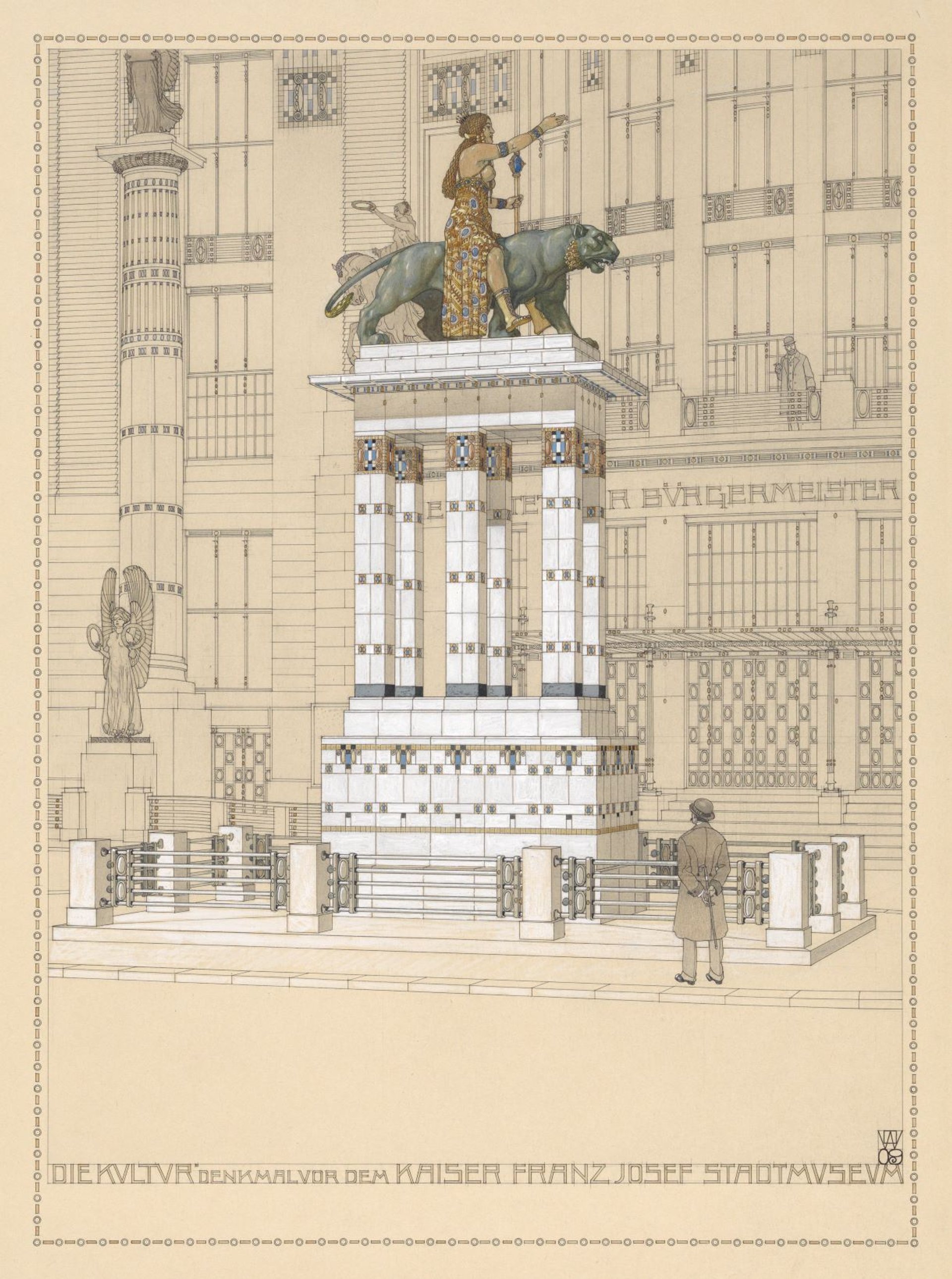 Otto Wagner, Monument à la culture devant le musée municipal Kaiser-Franz-Joseph, Karlsplatz, Vienne, 1900-1909, projet de concours, non réalisé. © Vienne, Wien Museum