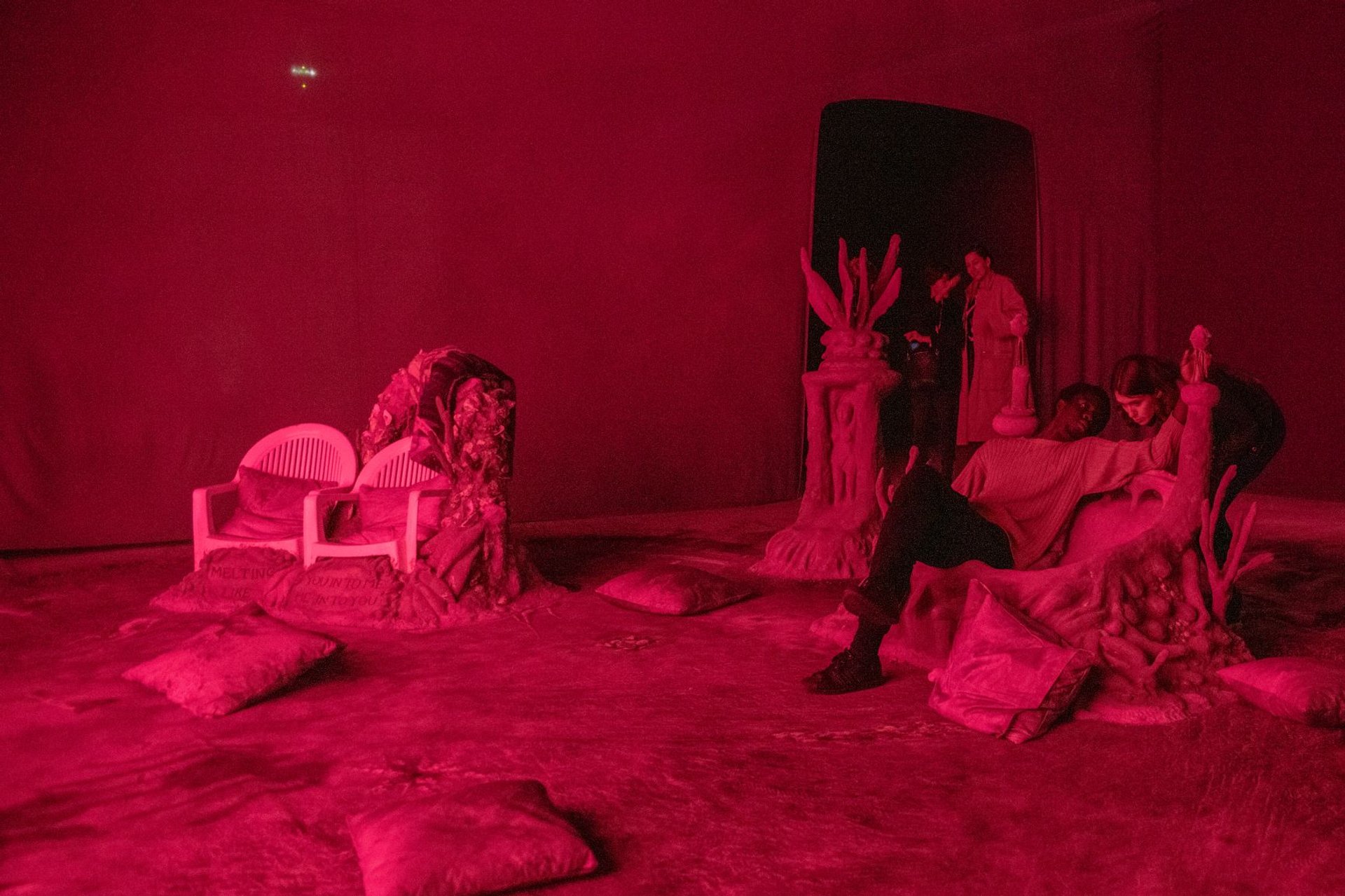 Vue de l’exposition « Laure Prouvost, Deep See Blue Surrounding You/Vois Ce Bleu Profond Te Fondre », Pavillon français à la 58e Biennale d’art de Venise, 2019. © Giacomo Cosua