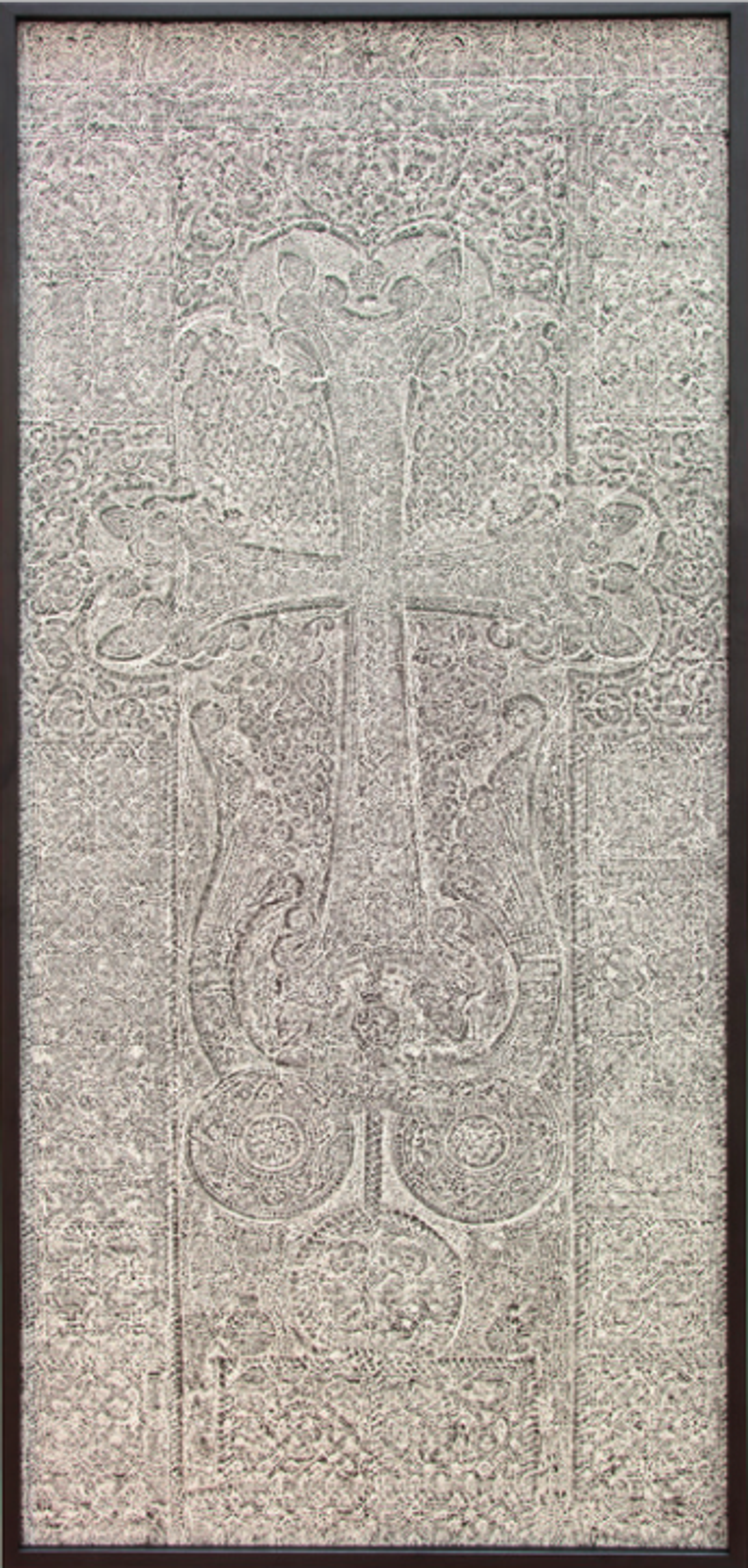 En visitant l’exposition récente de Pascal Convert à la galerie Éric Dupont, à Paris, je me disais que décidément les artistes sont, lorsqu’ils le désirent, des historiens d’art, certes d’un style particulier, mais aussi avec une efficacité particulière. Elle rassemblait entre autres plusieurs œuvres ayant pour objet de départ les khachkars, ces pierres dressées ou fragments d’architecture sculptés d’une ou plusieurs croix insérées dans un système ornemental complexe, qui ont été produits sur l’ensemble du territoire arménien entre le VIIIe et le XVIIIe siècle (quoique la forme en apparaisse avant et en ait été reprise depuis).
