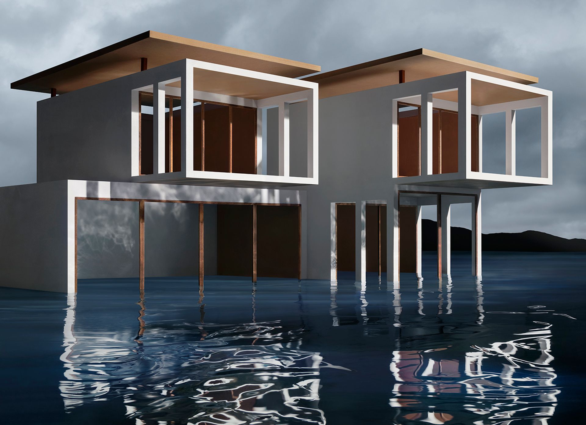 James Casebere, Santa Teresa White Duplex, 2019, tirage pigmentaire encadré et monté sur Dibond, 118,7 x 163,3 cm. © James Casebere