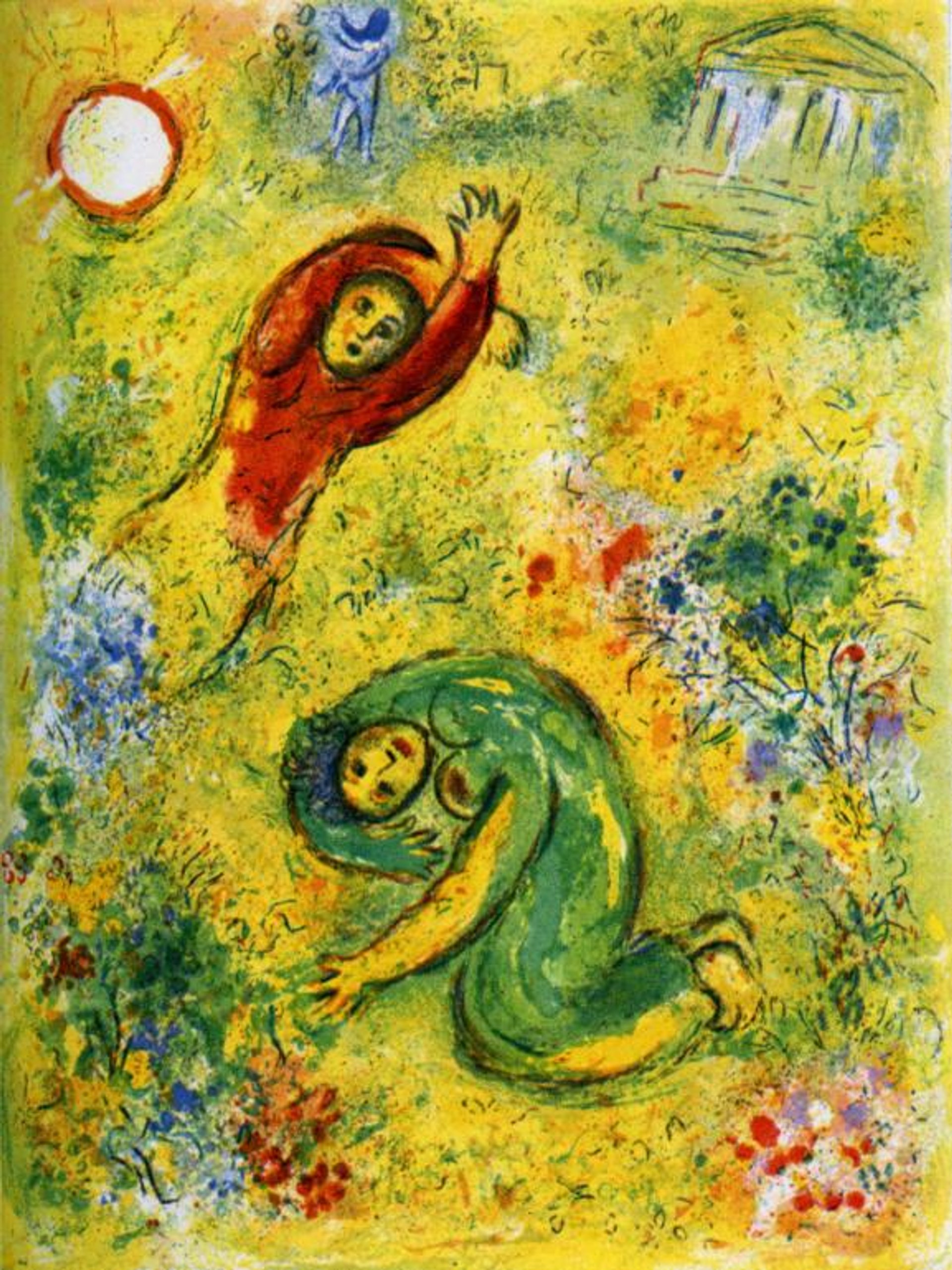 Marc Chagall, Les Fleurs saccagées, illustration pour le livre Daphnis et Chloé, 1961, lithographie. © ADAGP, Paris, 2019. © Photo : RMN-Grand Palais (musée Marc Chagall)