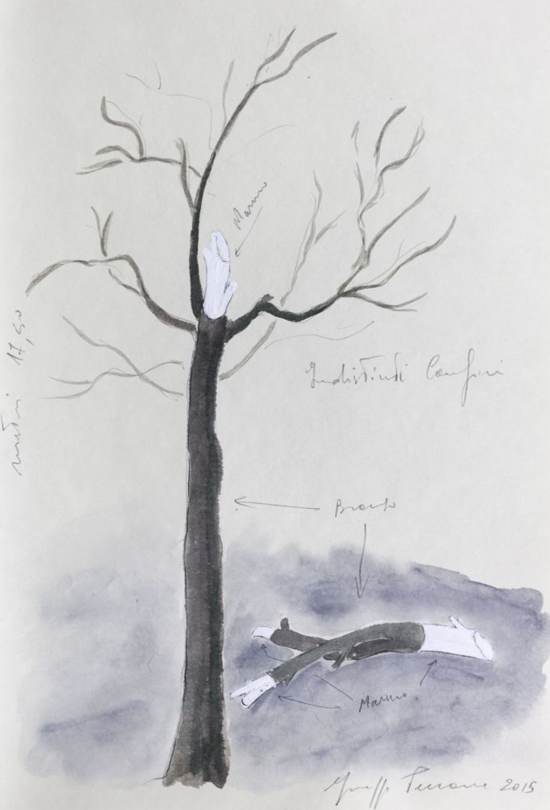 Giuseppe Penone, Dessin préparatoire de Indistinti confini – Noce, 2019. © Adagp, Paris 2019