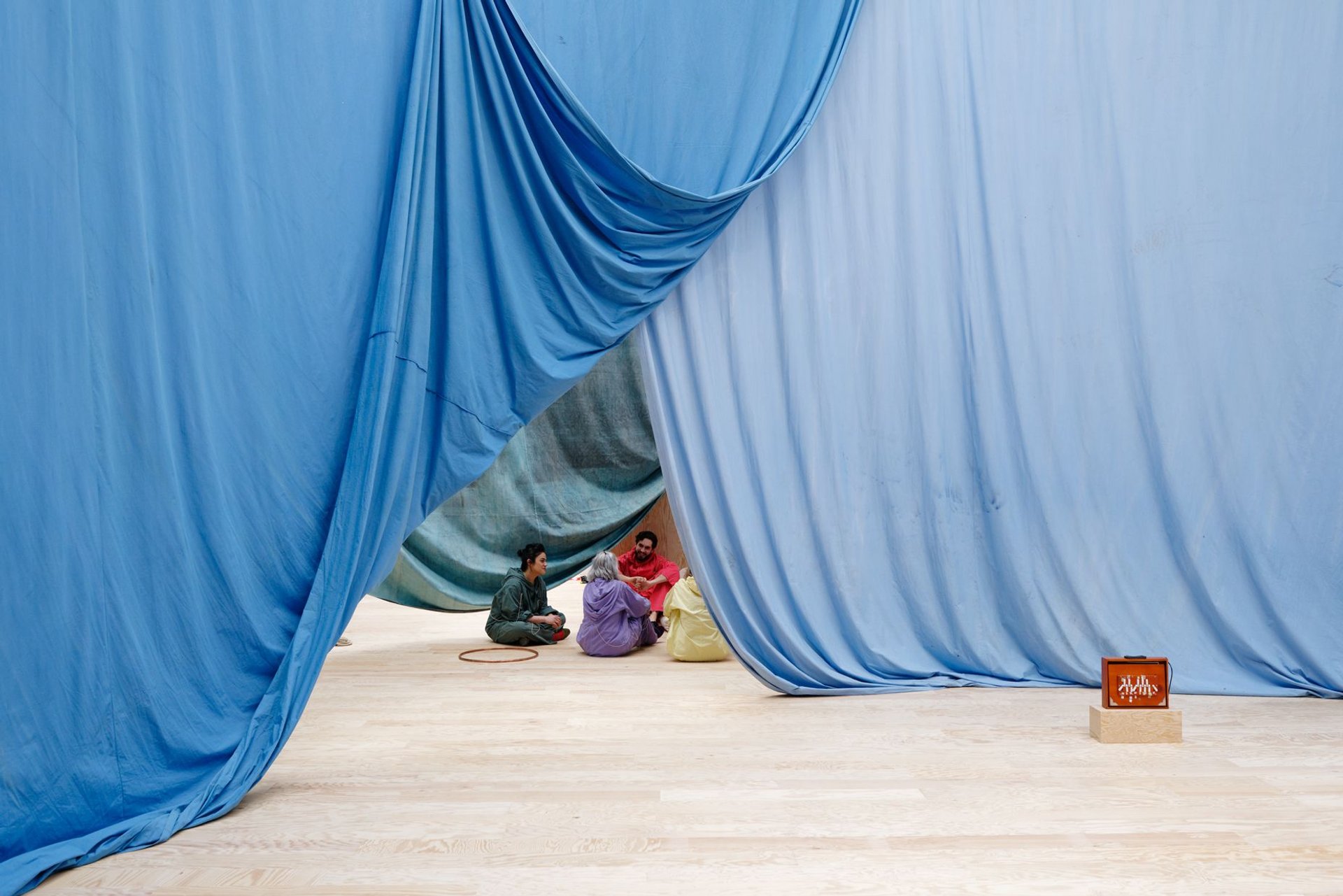 Ulla von Brandenburg a conçu au Palais de Tokyo une mise en scène théâtrale au fil d’un labyrinthe de drapés mêlant références à l’histoire de l’art, films et performances, évoquant l’idée du sacré et invitant à une expérience collective. « Ulla von Brandenburg. Le Milieu est bleu », jusqu’au 17 mai, Palais de Tokyo, 75116 Paris.