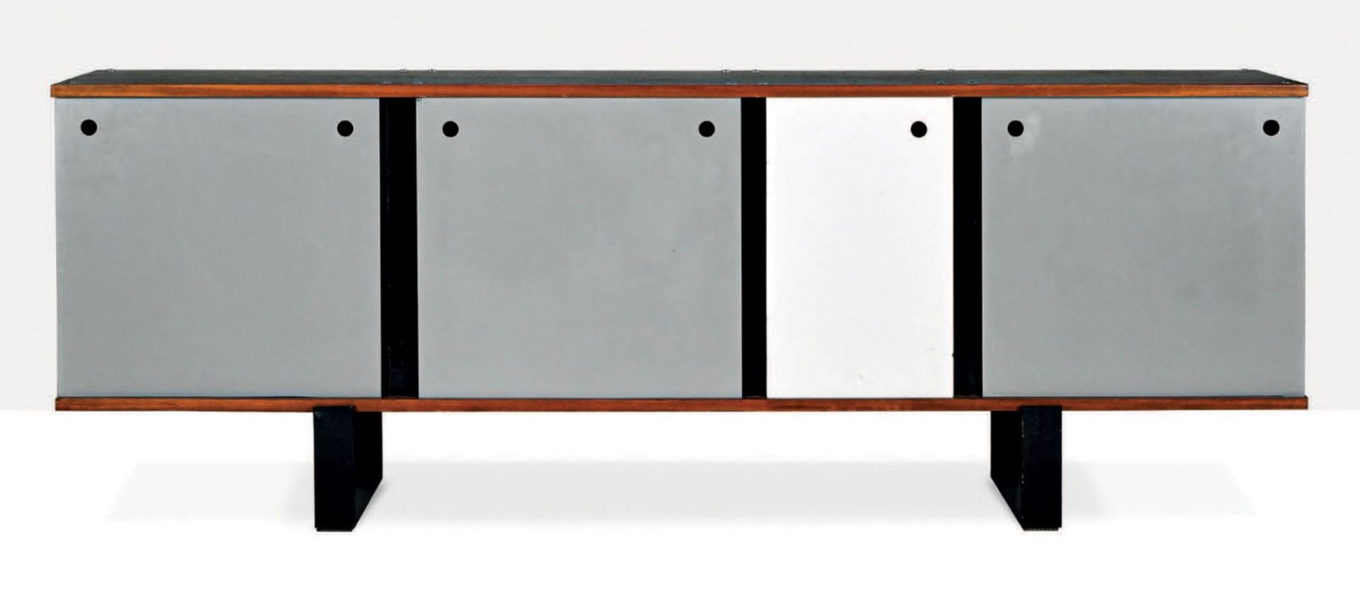 Charlotte Perriand, Rare bahut dit Bloc, acajou, plastique, tôle d’acier pliée teinté, 78,5 x 275 x 46 cm, estimé de 50 000 à 60 000 euros. © Aguttes/Drouot