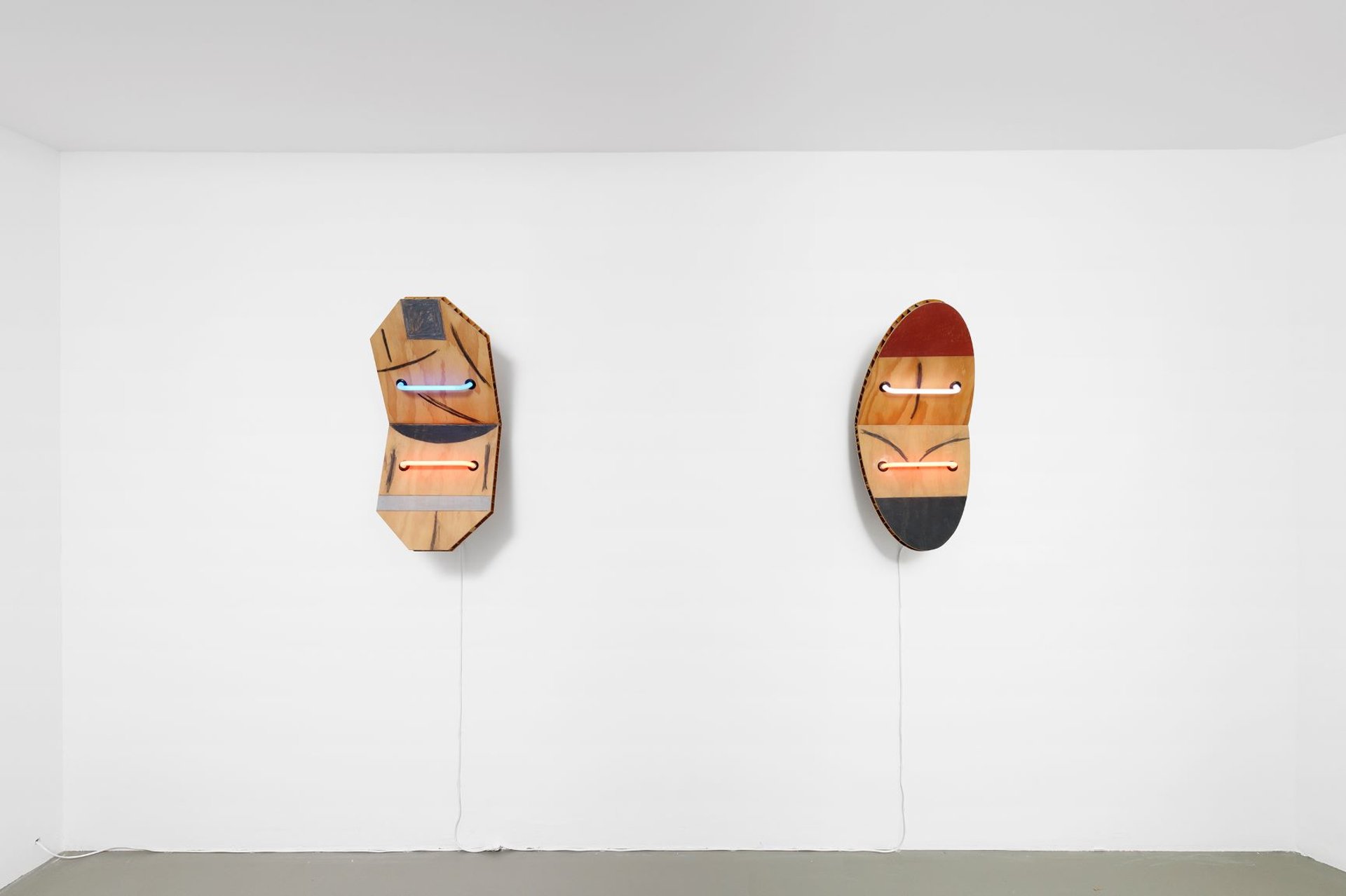 Vue de l’exposition, « Keith Sonnier. Files, shields and neons », 2020. © Galerie Mitterrand, Paris