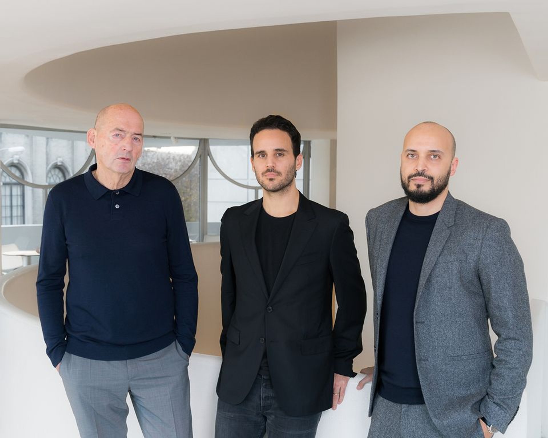 De gauche à droite, l’architecte Rem Koolhaas ; Troy Conrad Therrien, conservateur pour l'architecture et les initiatives numériques au Solomon R. Guggenheim Museum ; Samir Bantal, directeur de AMO, le think tank de Office for Metropolitan Architecture, à Rotterdam. © Solomon R. Guggenheim Foundation, 2019