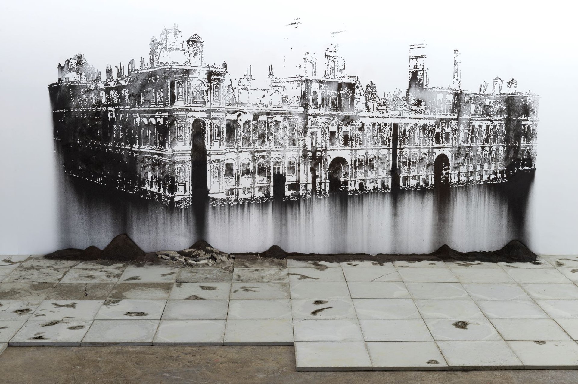 Au Palais de Tokyo, à Paris, Nicolas Daubanes, lauréat du Prix des Amis du Palais de Tokyo 2018, et diplômé de la HEART de Perpignan en 2012, s’inspire des manifestations populaires depuis la Commune de Paris pour offrir un paysage de bâtiments détruits. « Nicolas Daubanes. L’Huile et l’Eau », jusqu’au 17 mai, Palais de Tokyo, 75116 Paris.