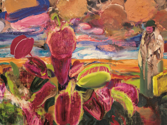 Les réflexions eschatologiques de Haenel sur « la courbure criminelle de l’Histoire moderne » développées dans Tout est accompli, qu’il cosigna l’an passé avec François Meyronnis et Valentin Retz, se poursuivent ainsi dans cette exégèse incisive d’un artiste agençant les cauchemars de l’histoire. Dans la série The Collector, ce dernier se focalise sur Hermann Göring, qui apparaît en esthète démoniaque contemplant des tableaux dans des intérieurs rougeâtres. Dans l’une d’elles, un corps flottant dans les airs fait allusion à son suicide, mais aussi à L’Archange prussien, œuvre dada qui représente un soldat postiche suspendu au plafond. En se concentrant sur des personnages sur-signifiants, de Vladimir Ilitch Lénine aux époux Ceausescu, en se peignant lui-même, endormi, observé par Adolf Hitler entouré de loups, Adrian Ghenie accule les torsions de Francis Bacon à d’inquiétantes mutations, dans un monde dénaturé sorti de l’espèce humaine, comme celui perçu par David Lynch. Installé à Berlin, ville symptôme, Ghenie affirme travailler sur les vides des tragédies récentes, ces béances laissées par les régimes dictatoriaux dont les effets sur le temps présent ne sont jamais vraiment abordés. Mais il remonte plus loin en s’arrêtant sur Charles Darwin, le concepteur de la théorie de l’évolution et de la sélection naturelle dévoyée par les nazis.