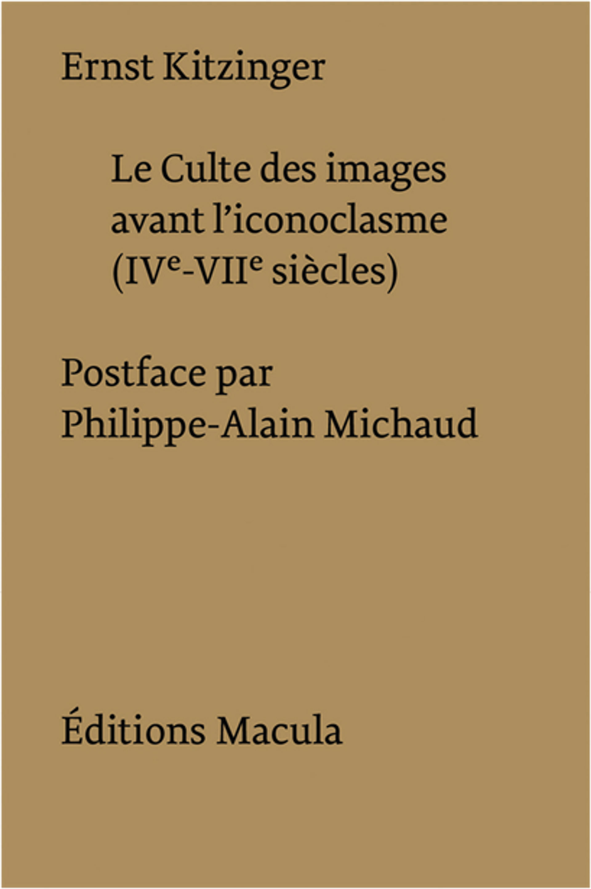 Les Éditions Macula proposent la première traduction en français de cette étude et lui associent, pour en rendre la lecture encore plus stimulante, une anthologie d’extraits des principaux textes cités, souvent difficiles d’accès. Afin de mettre l’ensemble en perspective, deux éclairages montrent ce que l’histoire de l’art doit à Kitzinger : la présentation de son parcours et de sa personnalité par Hans Belting en 1985 ; une postface de Philippe-Alain Michaud, également traducteur. Celui-ci y indique une voie d’entrée actuelle à la lecture de cet essai, qui s’avère lui-même éminemment sensible aux contextes, que ce soient ceux qu’il étudie ou celui dans lequel il est produit. « C’est donc pour comprendre ce monde d’images non fixées (littéralement, des icônes) et d’écrans virtuels et flottants dans lequel nous vivons qu’il faut revenir à la manière dont les Byzantins concevaient et manipulaient leurs propres images. »
